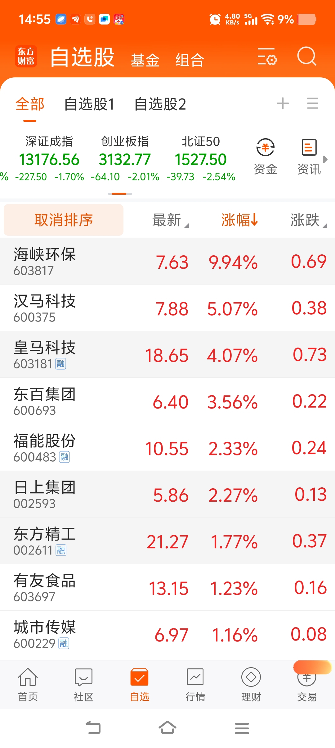 又是排名靠前的收盘价头一只抓到了。昨天晒的持仓最多的东方今天一样有五个点涨幅左右