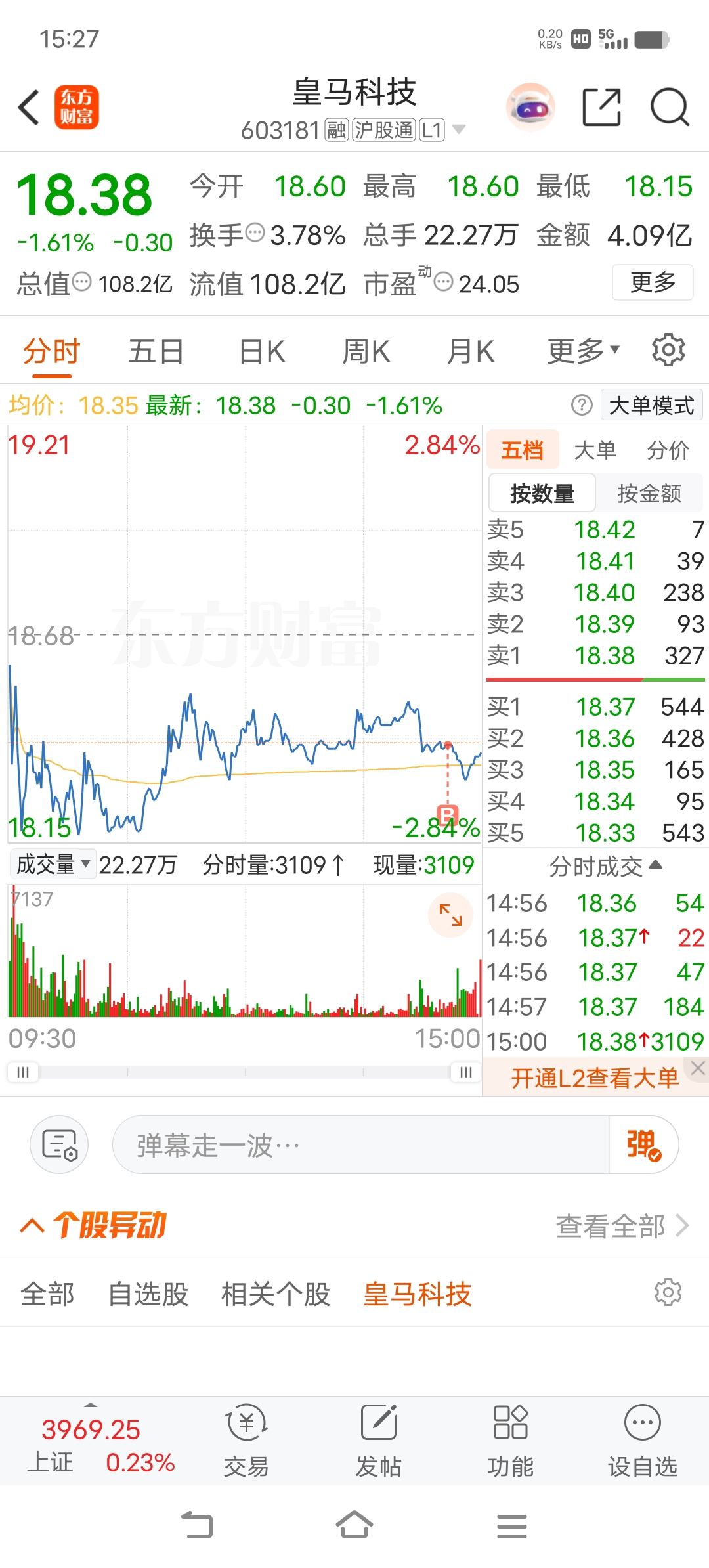 $皇马科技(SH603181)$ 尾盘买了3000股玩玩,下周卖。明后天如果下跌在各买2000股