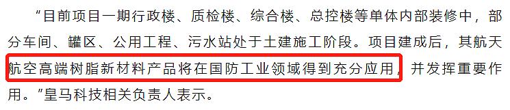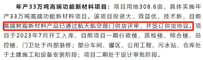 另外,此前上虞经开区公众号还提及:开眉客一期项目建成后,其航天航空高端树脂新材料产品将在国防工业领域得到充分应用。