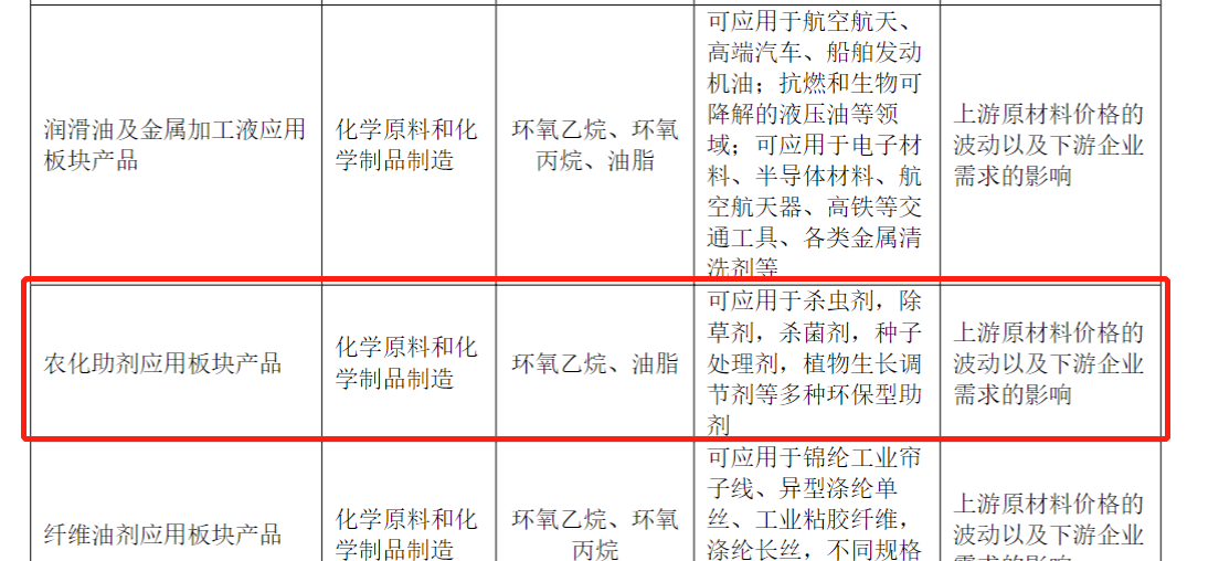 目前皇马农化板块业务,主要是农化助剂应用产品,可应用于杀虫剂,除草剂,杀菌剂,种