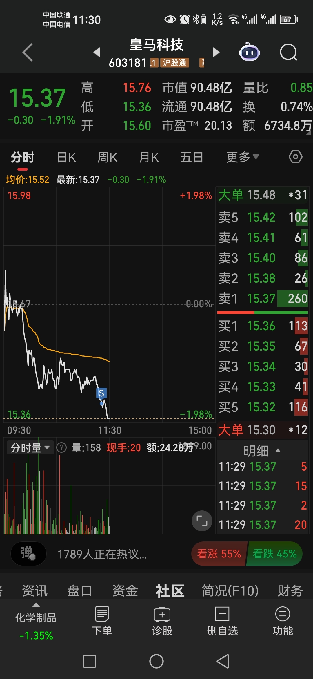$皇马科技(SH603181)$ 尾货清仓了,各位保重