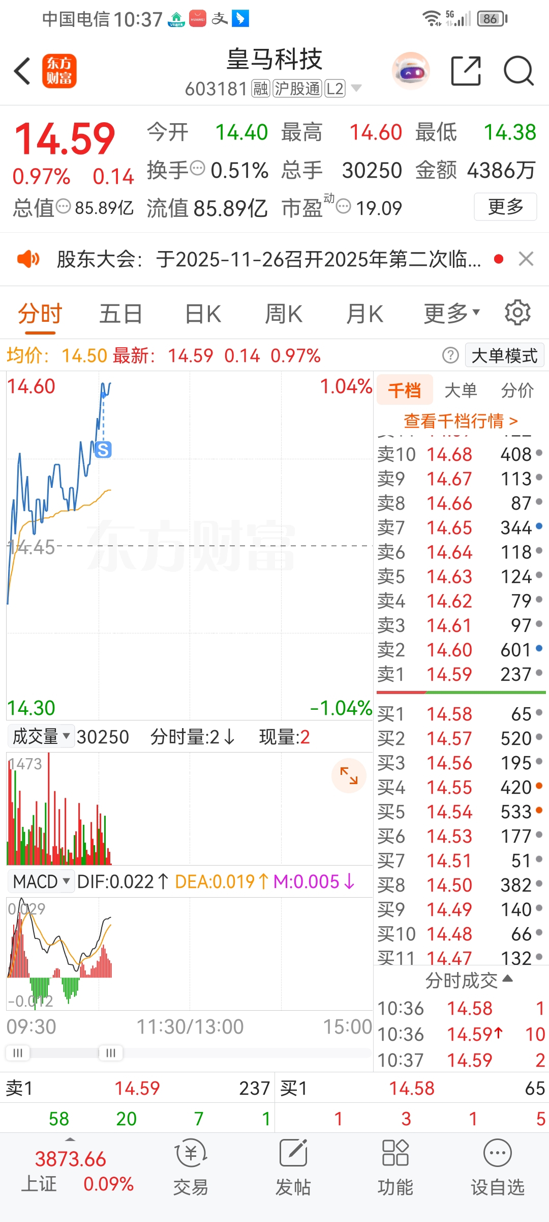 $皇马科技(SH603181)$ 可以涨了宝贝!