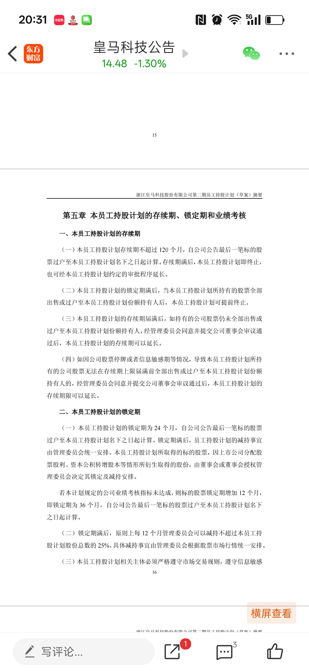$皇马科技(SH603181)$ 锁仓两年,而且如果公司效益不达预期,还要再增加一年也就是三年锁定,还有员工减持股票也要董事会同意,减持的时候每年不能卖超过自身的百分之二十,反正员工想八块低价拿到这些股票附加条件太苛刻,我觉得董事会指定有点毛病要我也不会同意,和员工看不看低股价无关,八块确实是低价股票,但是这个低价股票不是那么好拿的,而且一个员工持股多大点事公司反复炒作也挺没意思的