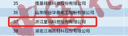 12月4日,第二十五届精细化工行业(宁东)大会在宁夏宁东能源化工基地开幕,会上发布了“2025中国精细化工TOP100”等榜单。皇马科技在2025年度中国精细化工百强、绿色低碳发展企业十强中,分别位列第37名和第10名。
