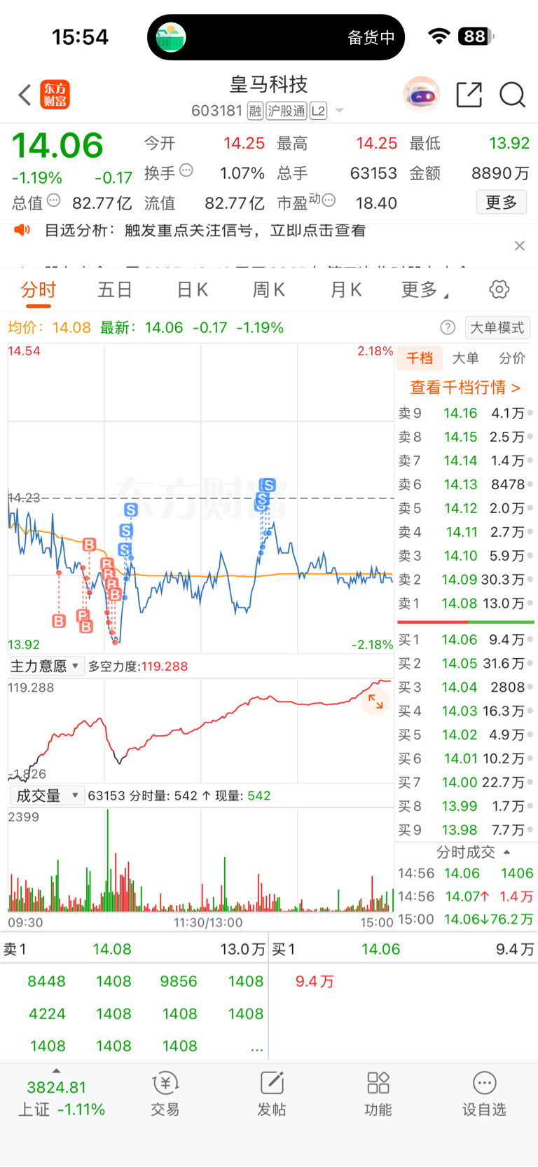 $皇马科技(SH603181)$ 只有向上拉升才能阻止我做 T