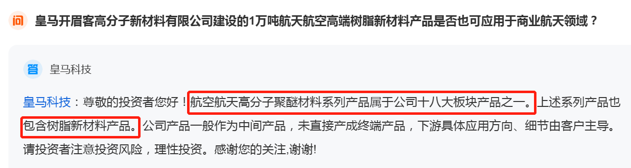 航空航天高分子聚醚材料系列产品属于公司十八大板块产品之一,上述系列产品也包含树脂