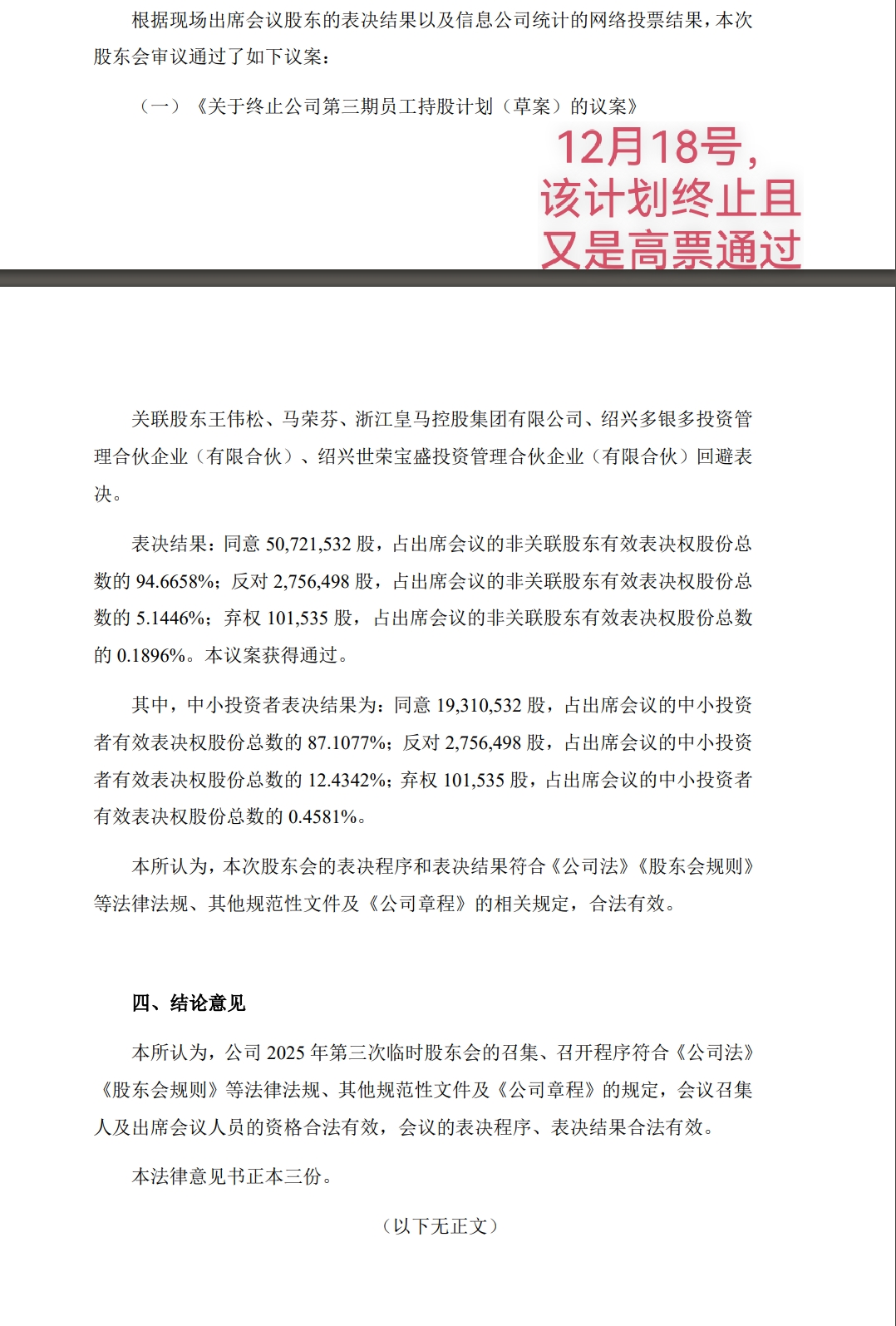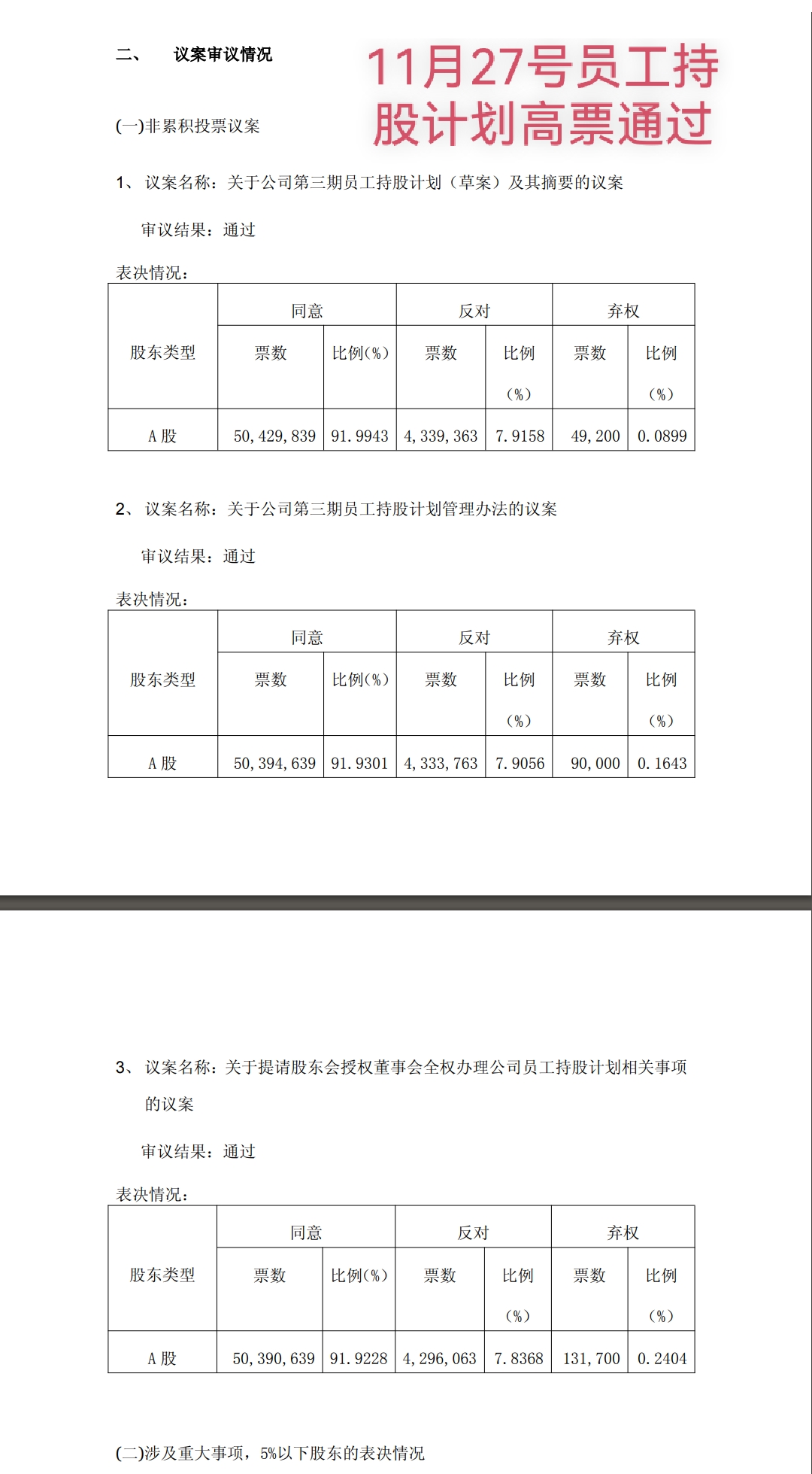 该票11月19号投票通过员工持股计划, 12月18号又投票将该法案废止。