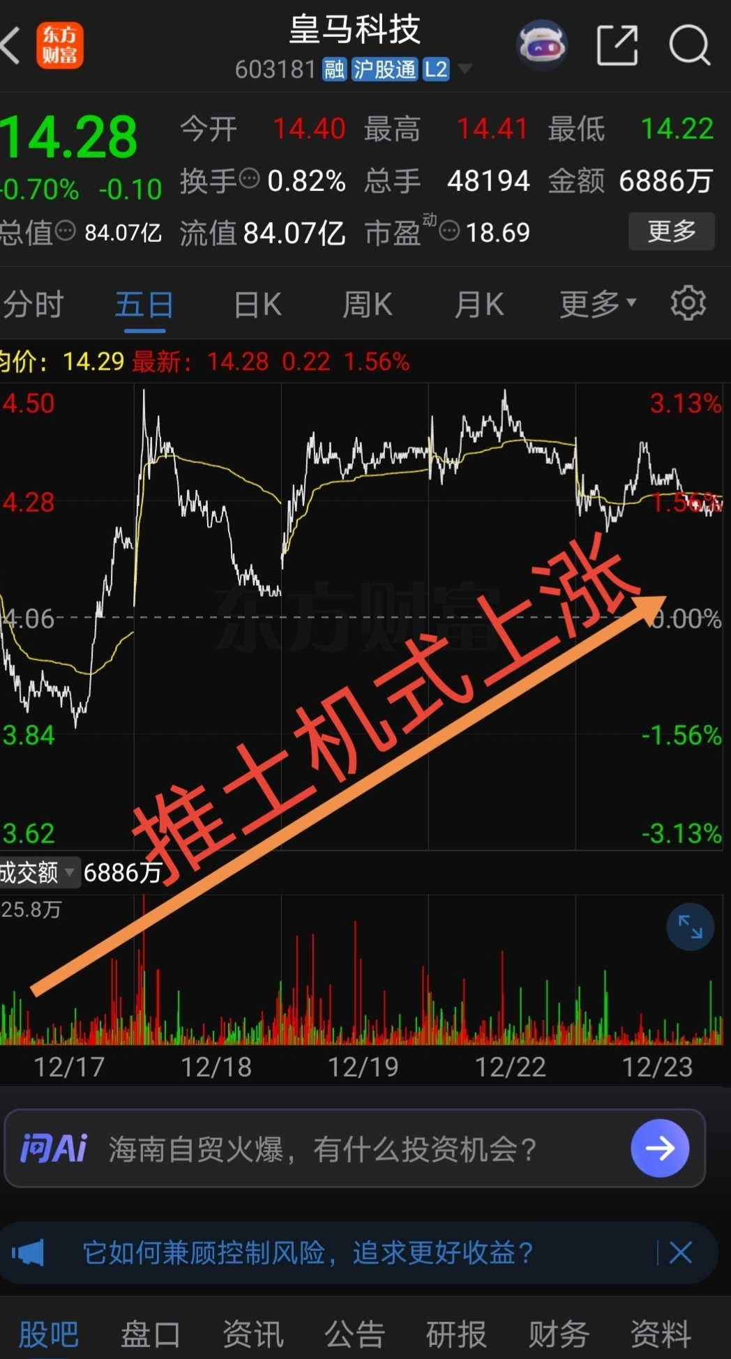 $皇马科技(SH603181)$ 推土机式边洗边涨边吃货!一但庄家吃饱喝足!偷偷甩掉散户,一冲飞天!开启主升浪!拿稳了!