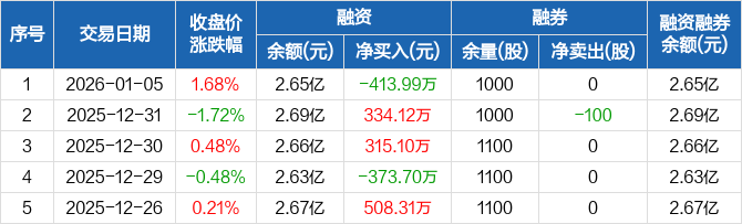 皇马科技:融资净偿还413.99万元,融资余额2.65亿元(01-05)