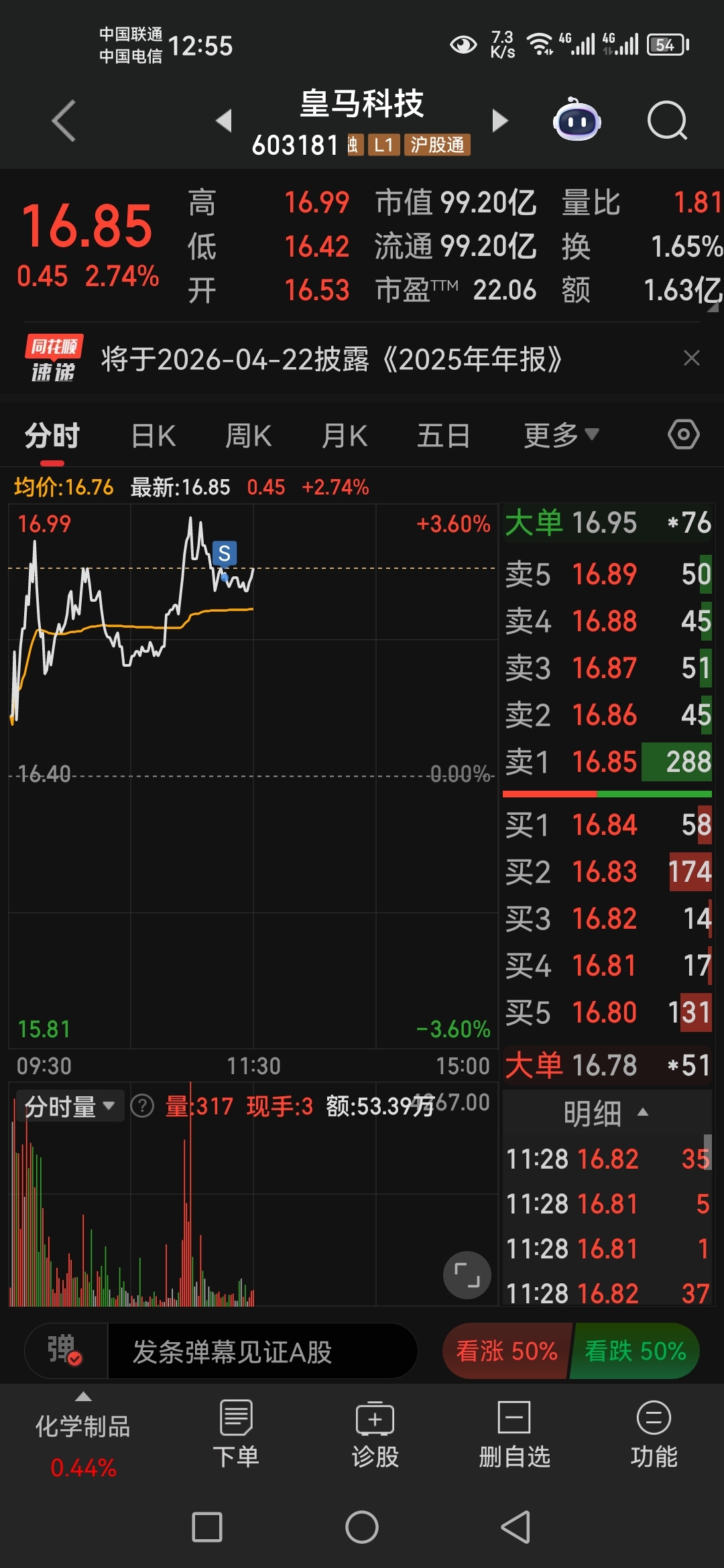 $皇马科技(SH603181)$ 清仓留了100股,祝留下的发财