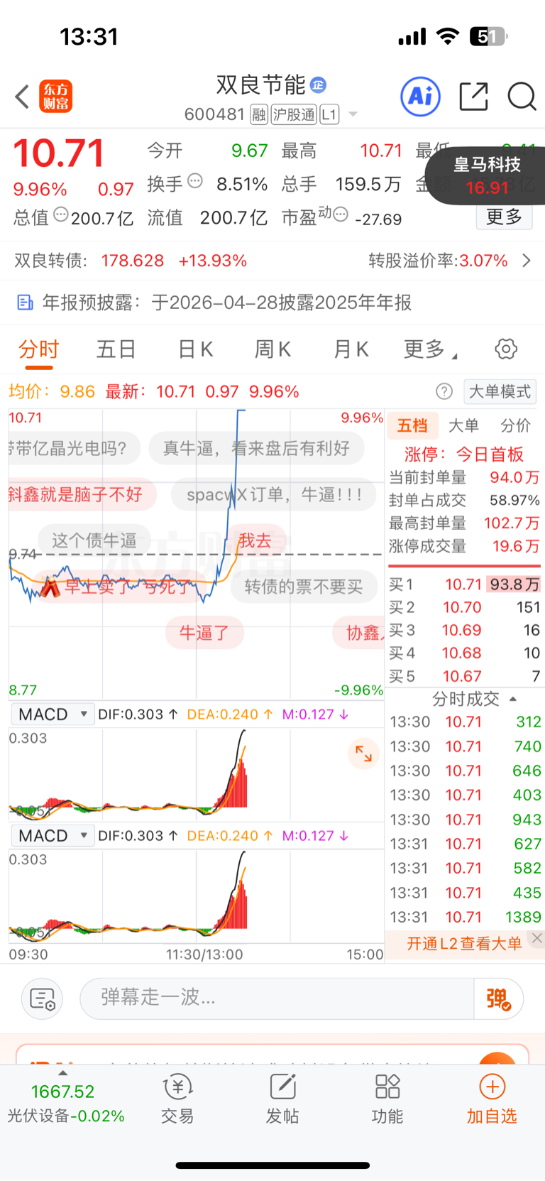 $皇马科技(SH603181)$ 买了你,错过了凢个亿