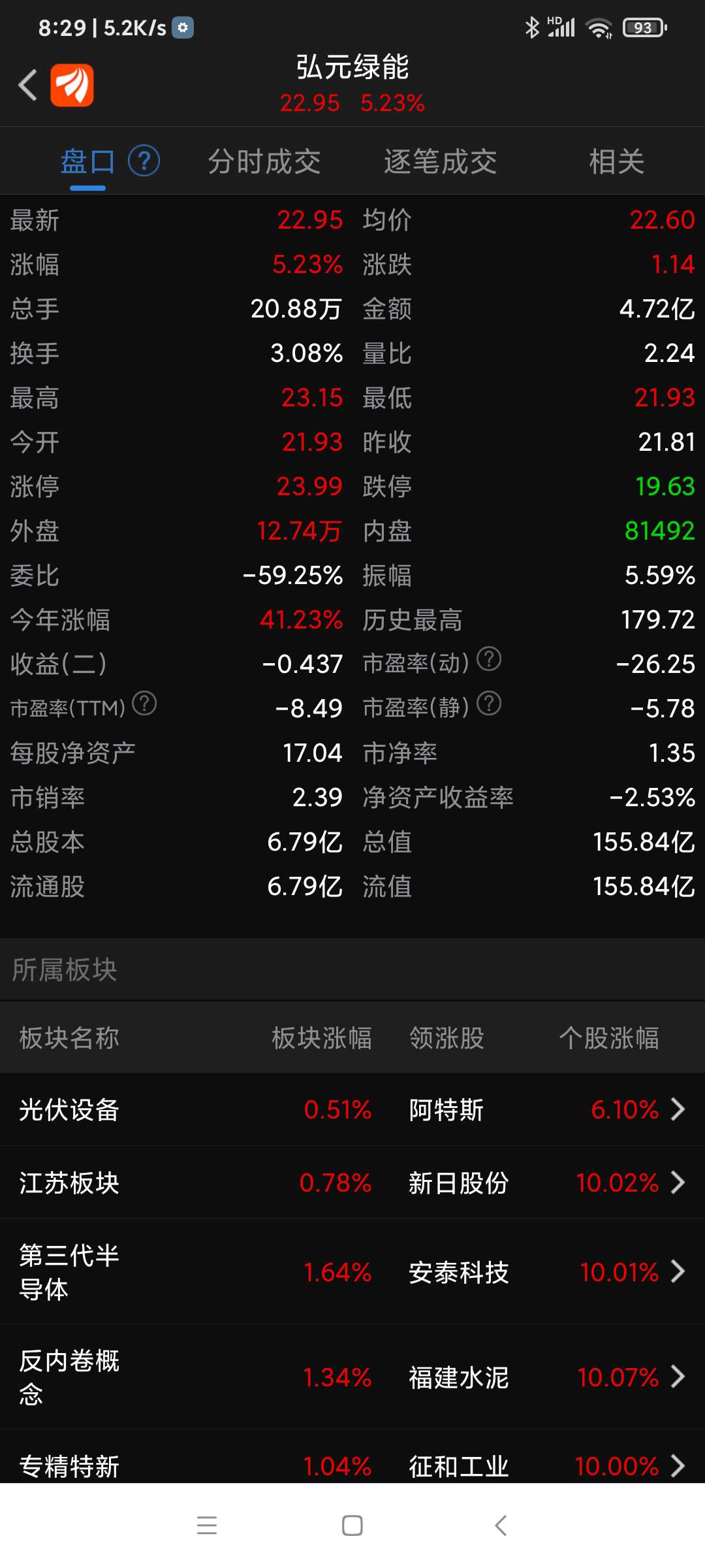 弘元绿能昨日表现,MACD即将金叉,融资客逢高减仓。
