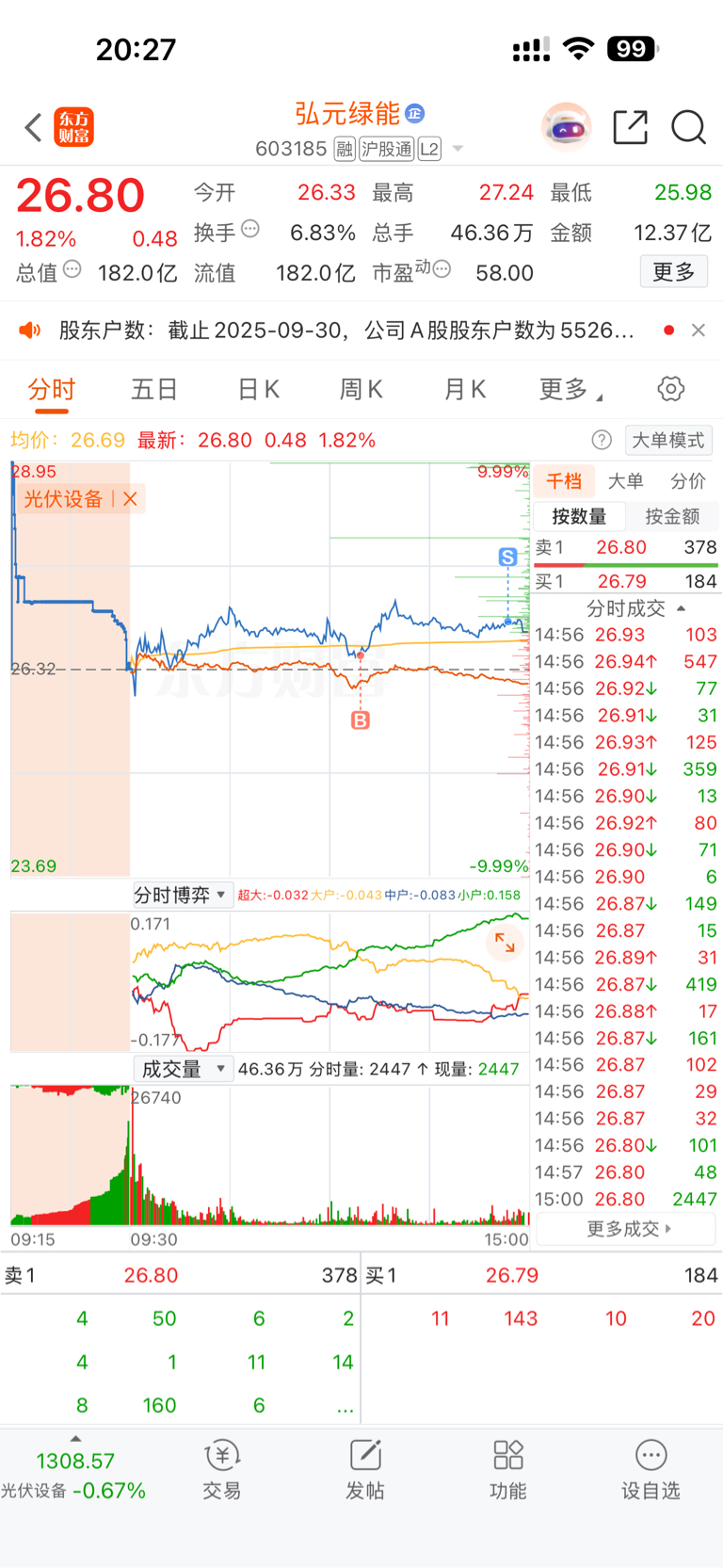 $弘元绿能(SH603185)$ 糙,今天加进去的尾盘又出了,怪不得今天一整天都不受大盘影响