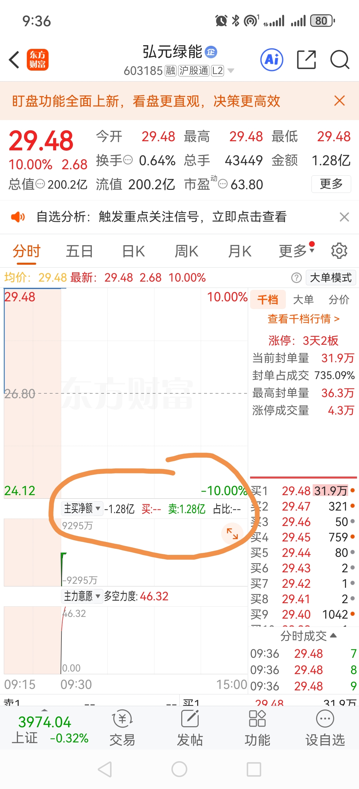 $弘元绿能(SH603185)$ 第一次见只买为0的啊,该不该跑啊