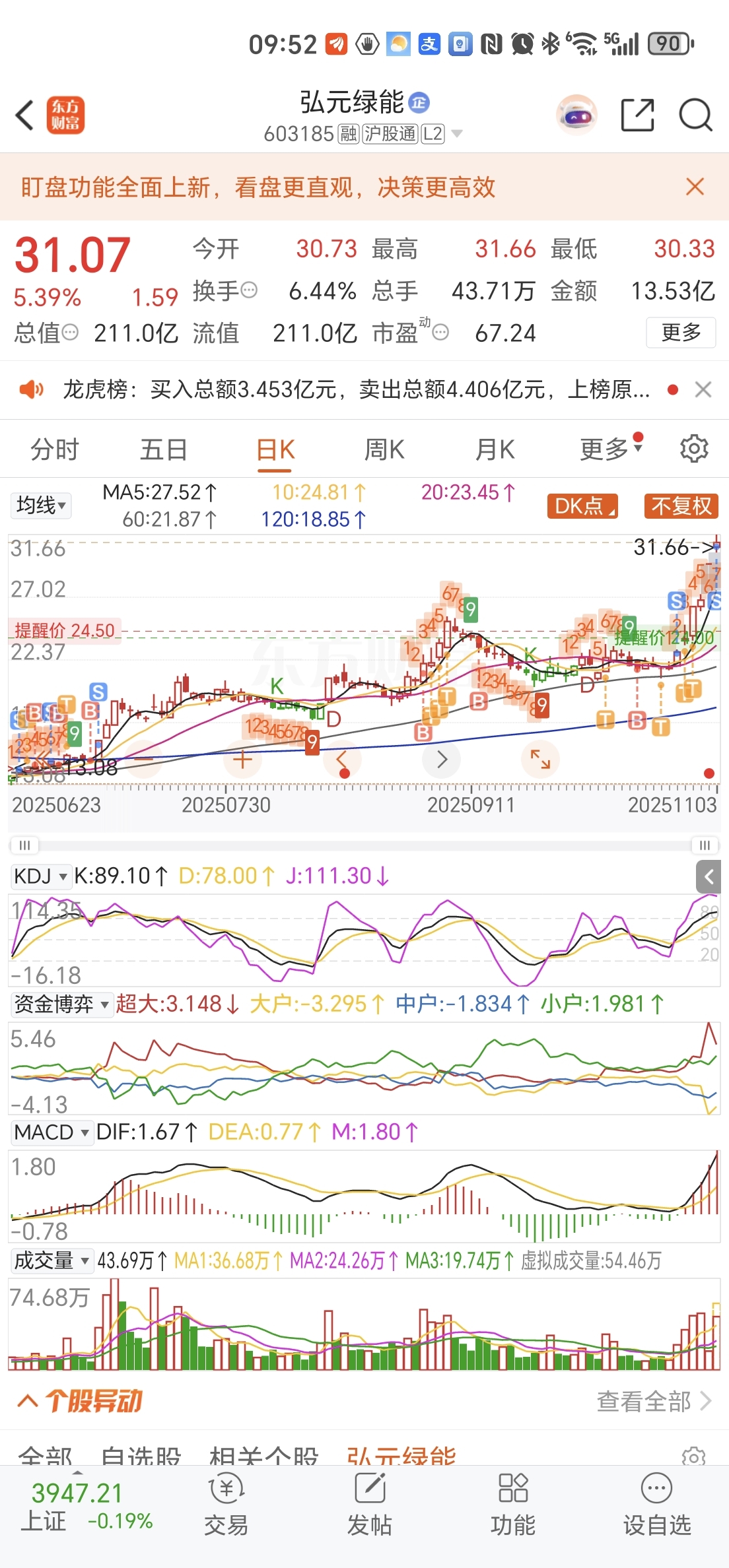 $弘元绿能(SH603185)$ 我的认知都到这了,35个点,跑了跑了,虽然我觉得还有,但还是落袋为安吧