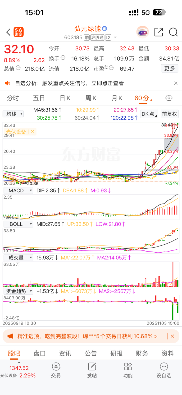 $弘元绿能(SH603185)$ 板上出货吗?最后一小时跑了1.5亿。天量