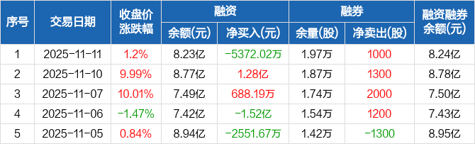 弘元绿能:融资净偿还5372.02万元,融资余额8.23亿元(11-11)