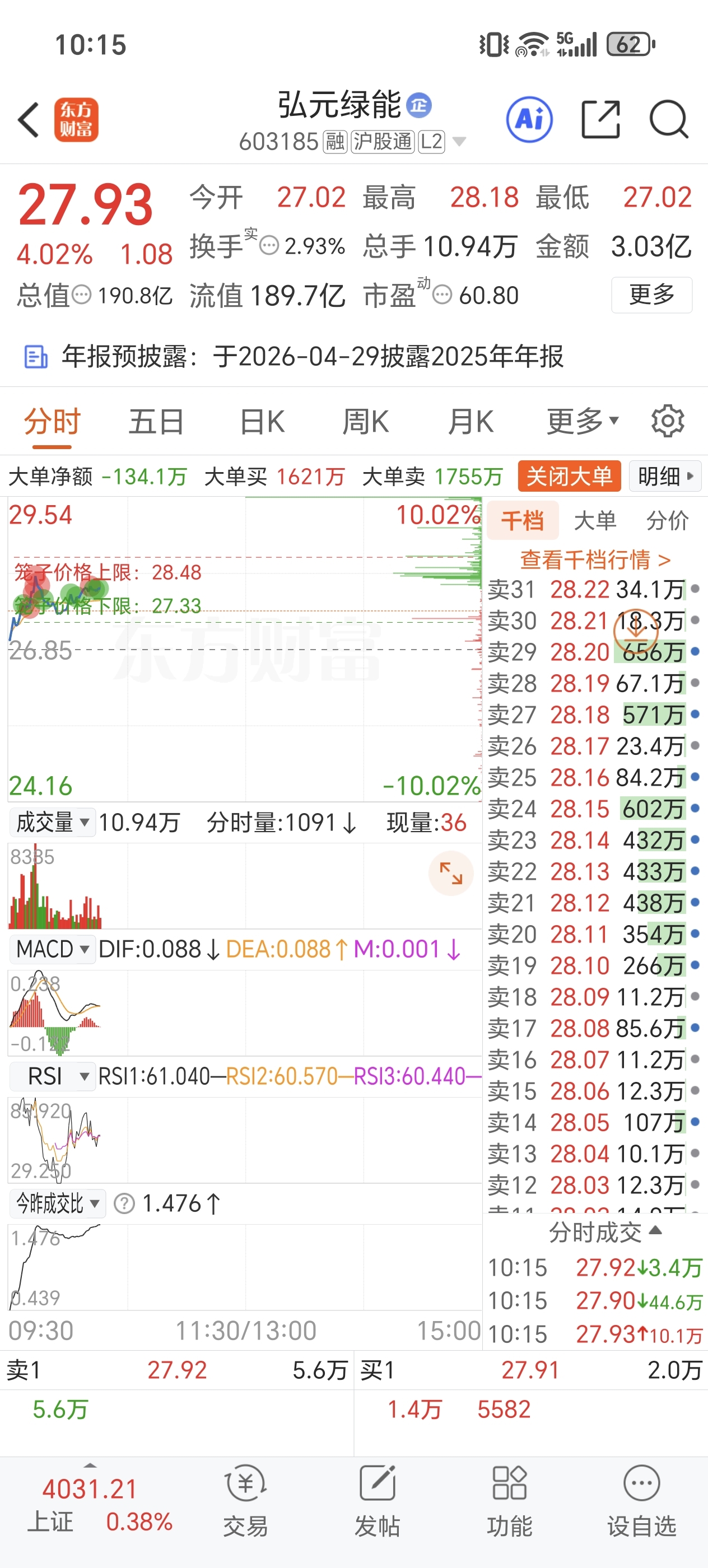 $弘元绿能(SH603185)$ 28块10左右那么多的卖单,额贼了