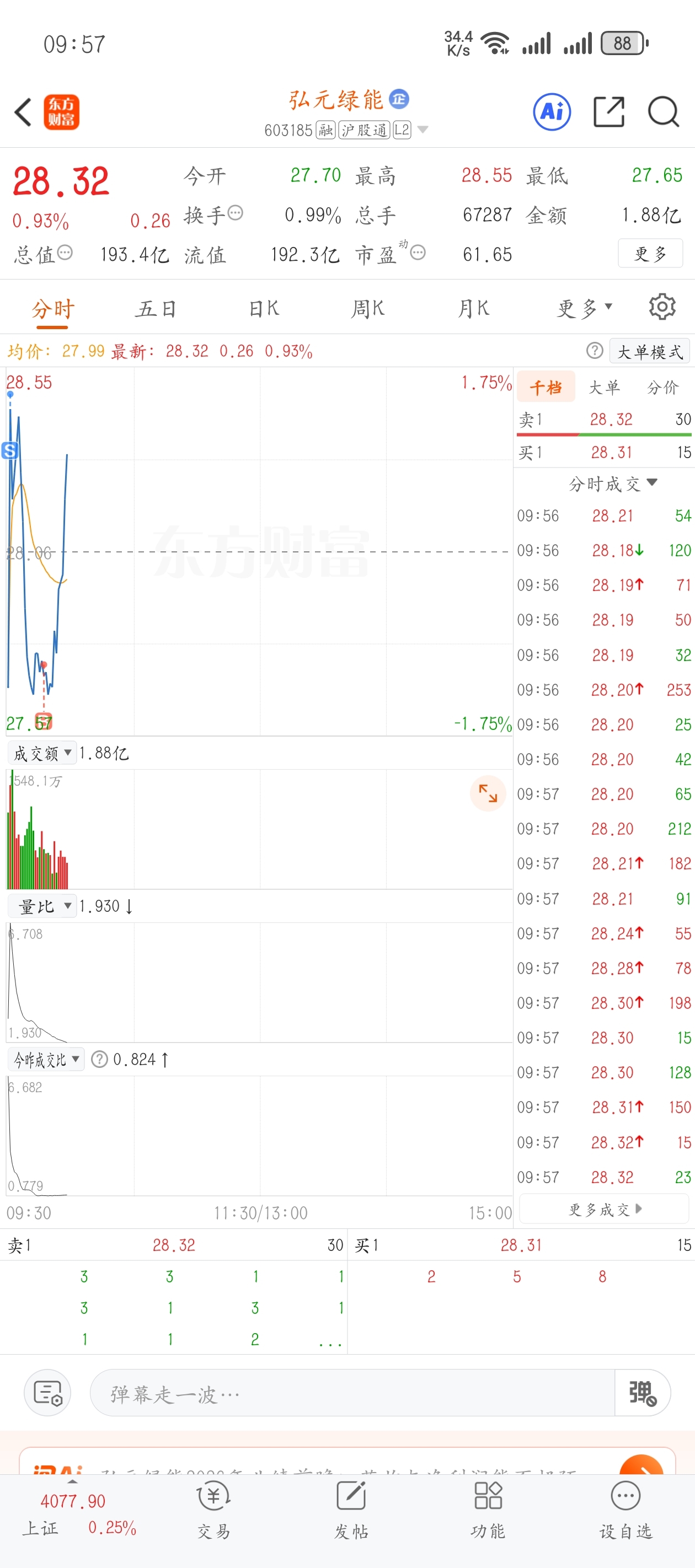 $弘元绿能(SH603185)$ 跟着板块涨跌也好,这样起码不会太差,放低1个点买卖就行了,毕竟现在是被动跟的行情,要不然就买成ETF……