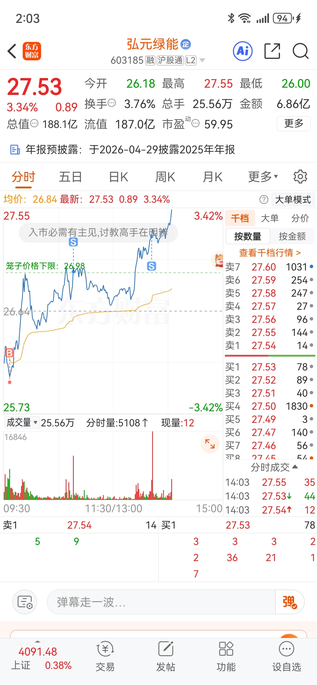 $弘元绿能(SH603185)$ 26买的,但是已经t了,留点子弹可以打