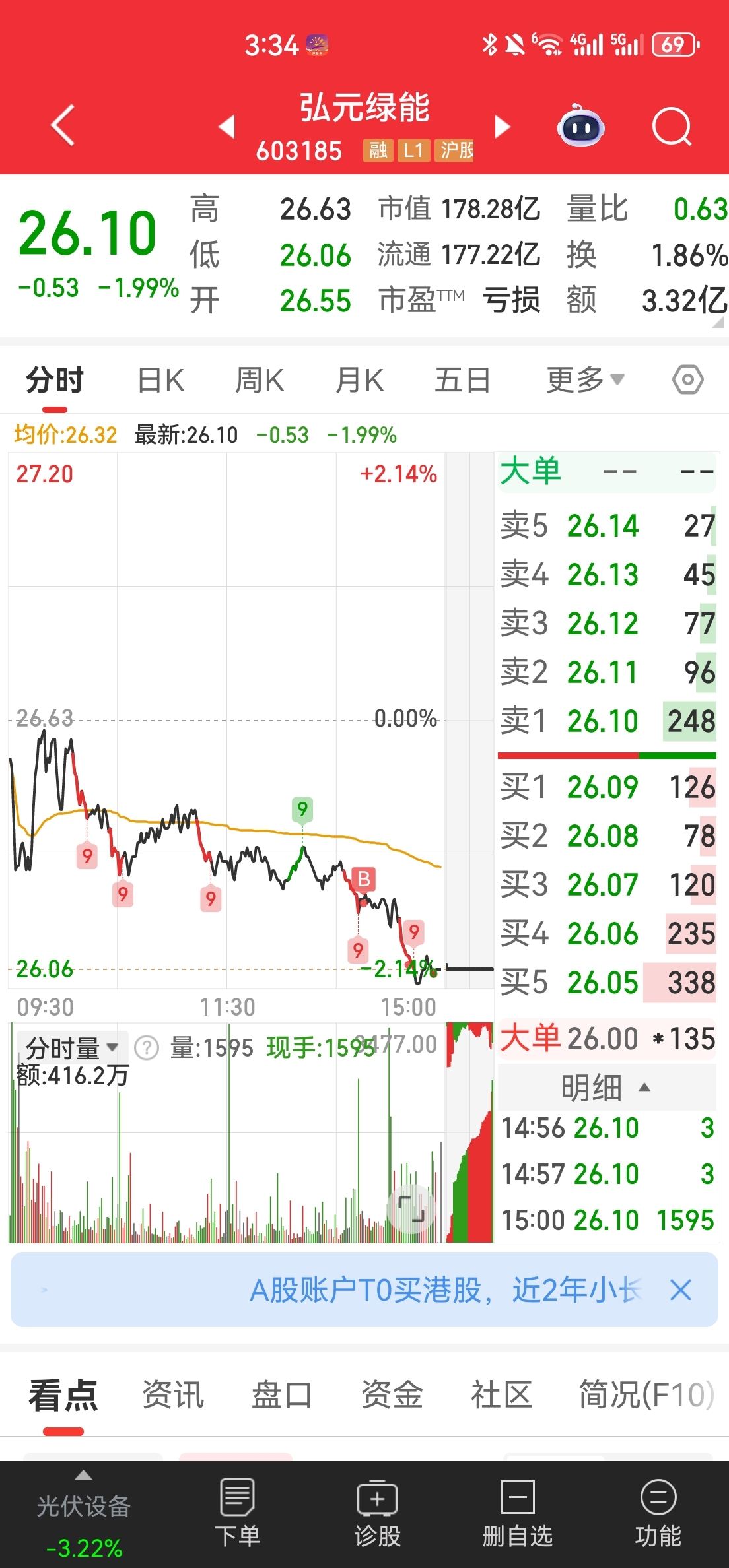 $弘元绿能(SH603185)$ 英唐减仓尾盘接了之前的减仓。