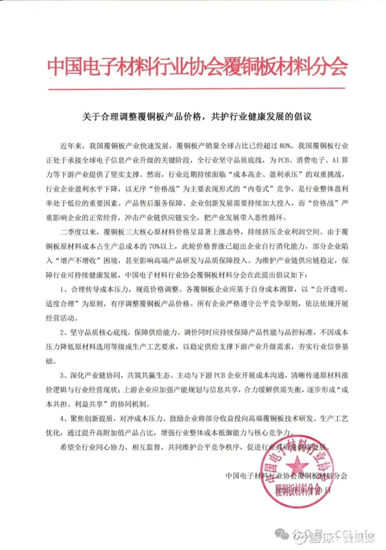 $华正新材(SH603186)$ 覆铜板行业涨价周期即将到来
