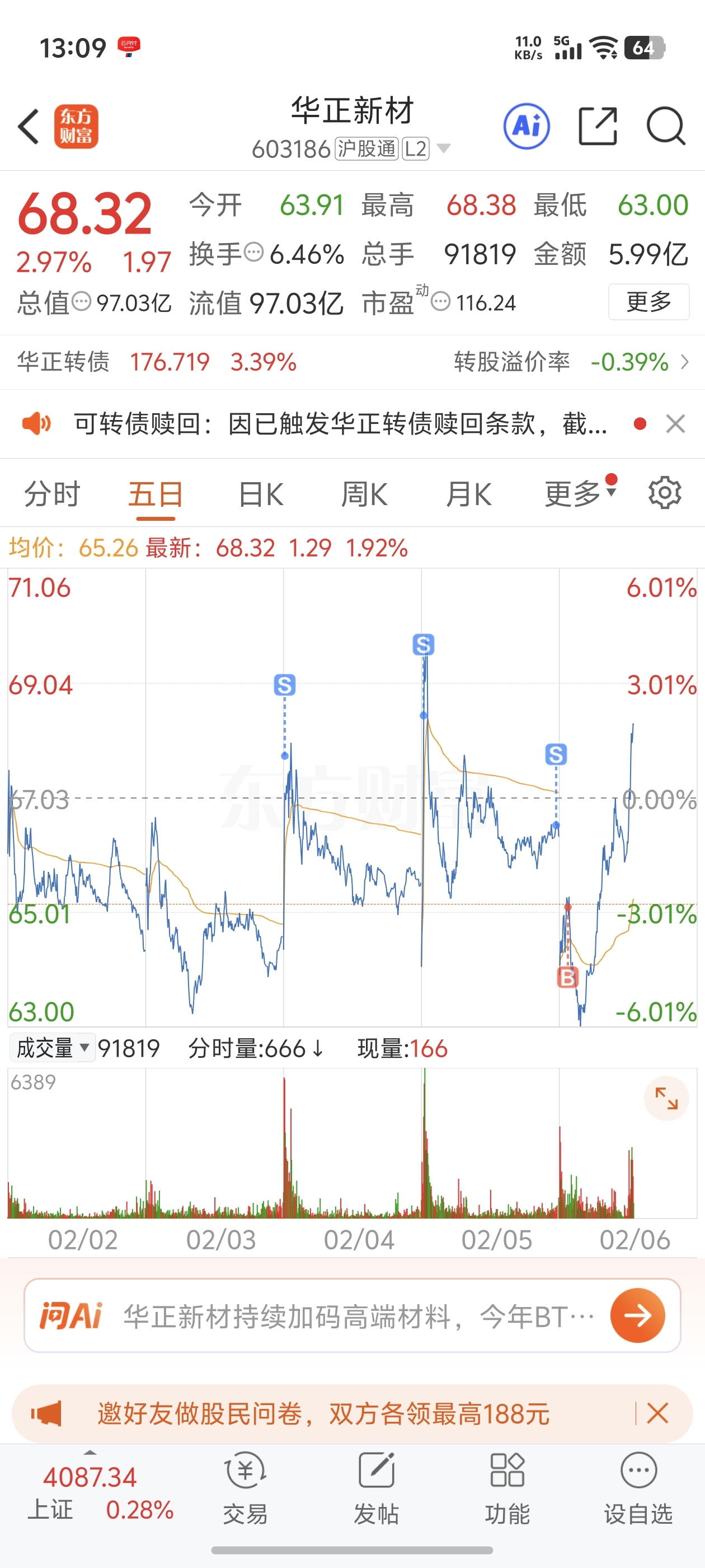 $华正新材(SH603186)$ 昨天清仓你抄底永鼎。今天早上高抛永鼎立马追回你。舒服