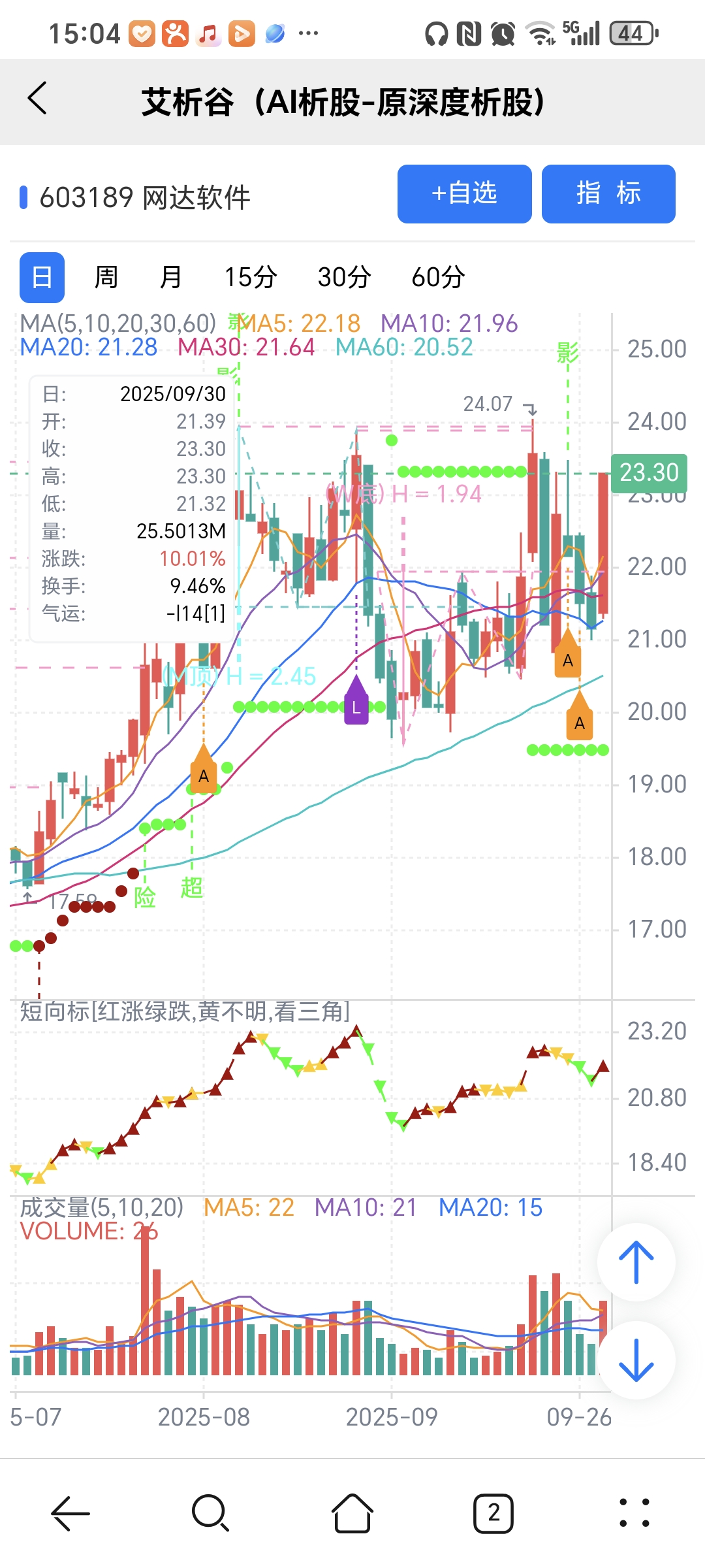 红绿小圆点是艾析谷的量化指标-超级短趋线,是趋势跟踪+突破类的量化指标,完全免费。