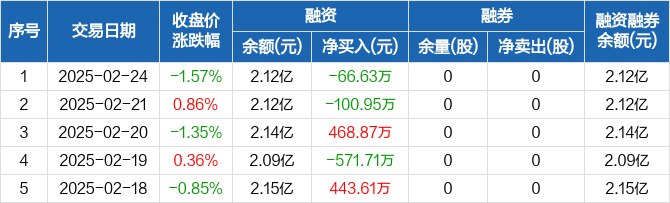 望变电气:融资净偿还66.63万元,融资余额2.12亿元(02-24)