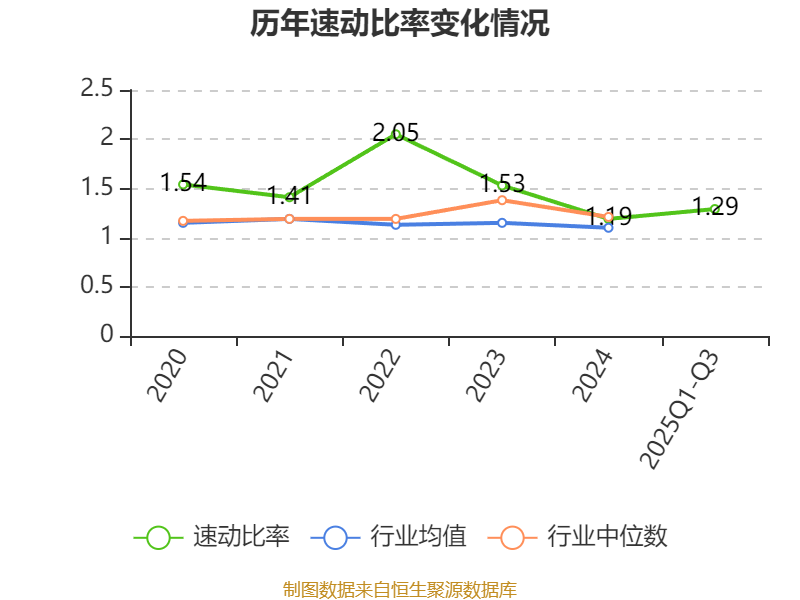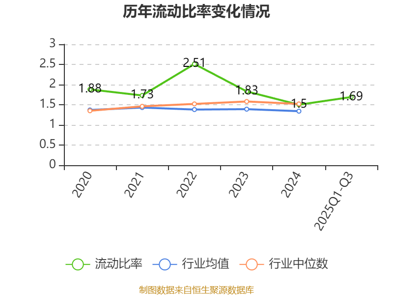 2025年前三季度,公司流动比率为1.69,速动比率为1.29。