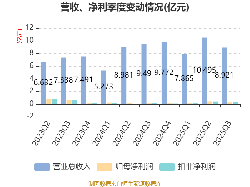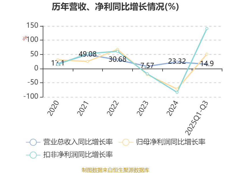资产重大变化方面,截至2025年三季度末,公司固定资产较上年末减少6.39%,占公司总资产比重下降4.43个百分点;存货较上年末增加32.08%,占公司总资产比重上升2.78个百分点;货币资金较上年末增加23.72%,占公司总资产比重上升2.34个百分点;应收票据及应收账款较上年末增加7.79%,占公司总资产比重下降0.39个百分点。