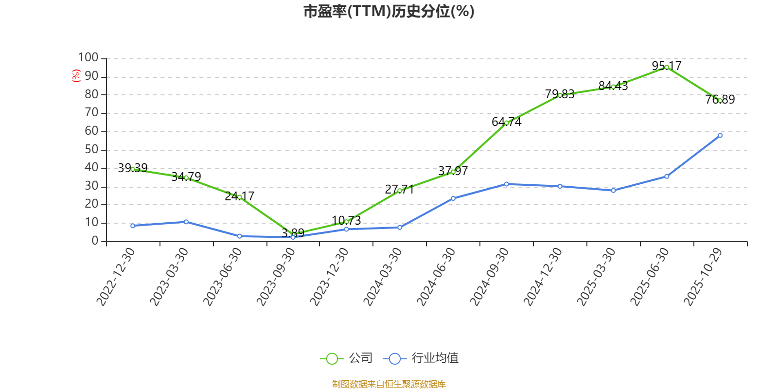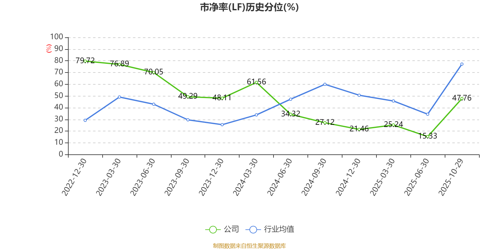 市盈率、市净率为负时,不显示当期分位数,会导致折线图中断。
