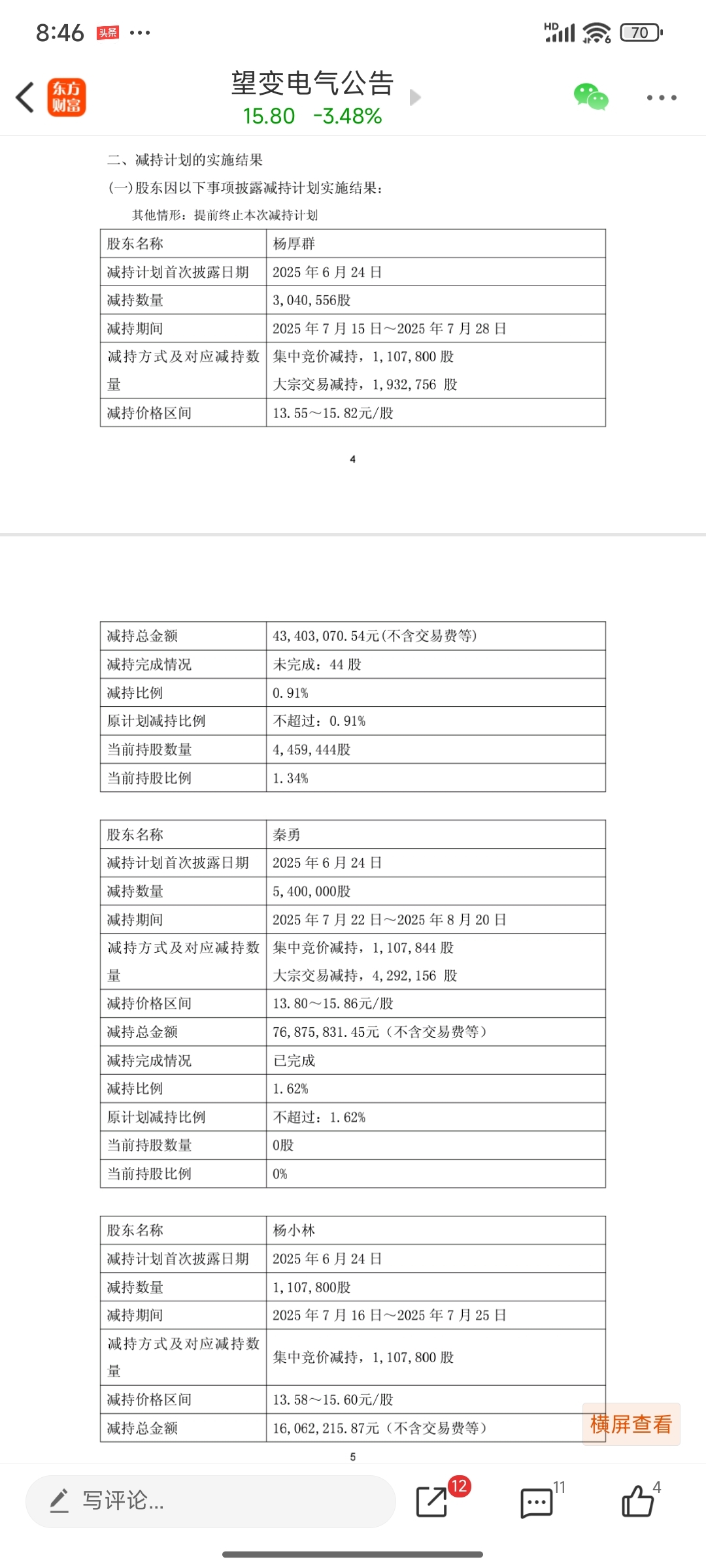 减持时间是11月12日到26年2月11日发的内容有点早了