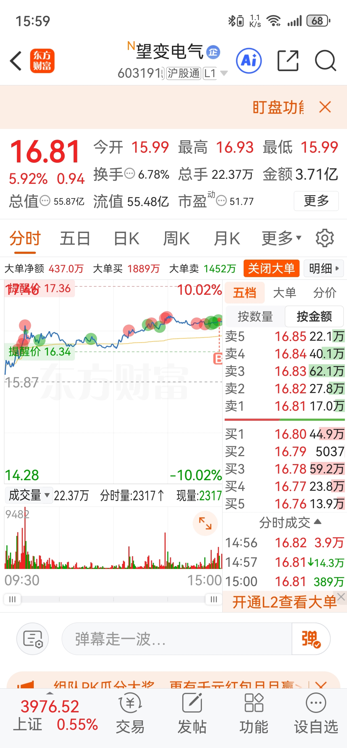 $望变电气(SH603191)$ 尾盘进去啦,明天好运气