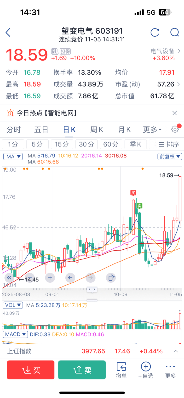 $望变电气(SH603191)$ 谁能拿得住,买点不对,努力白费