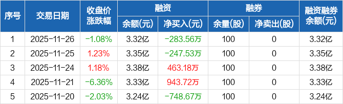 望变电气:融资净偿还283.56万元,融资余额3.32亿元(11-26)