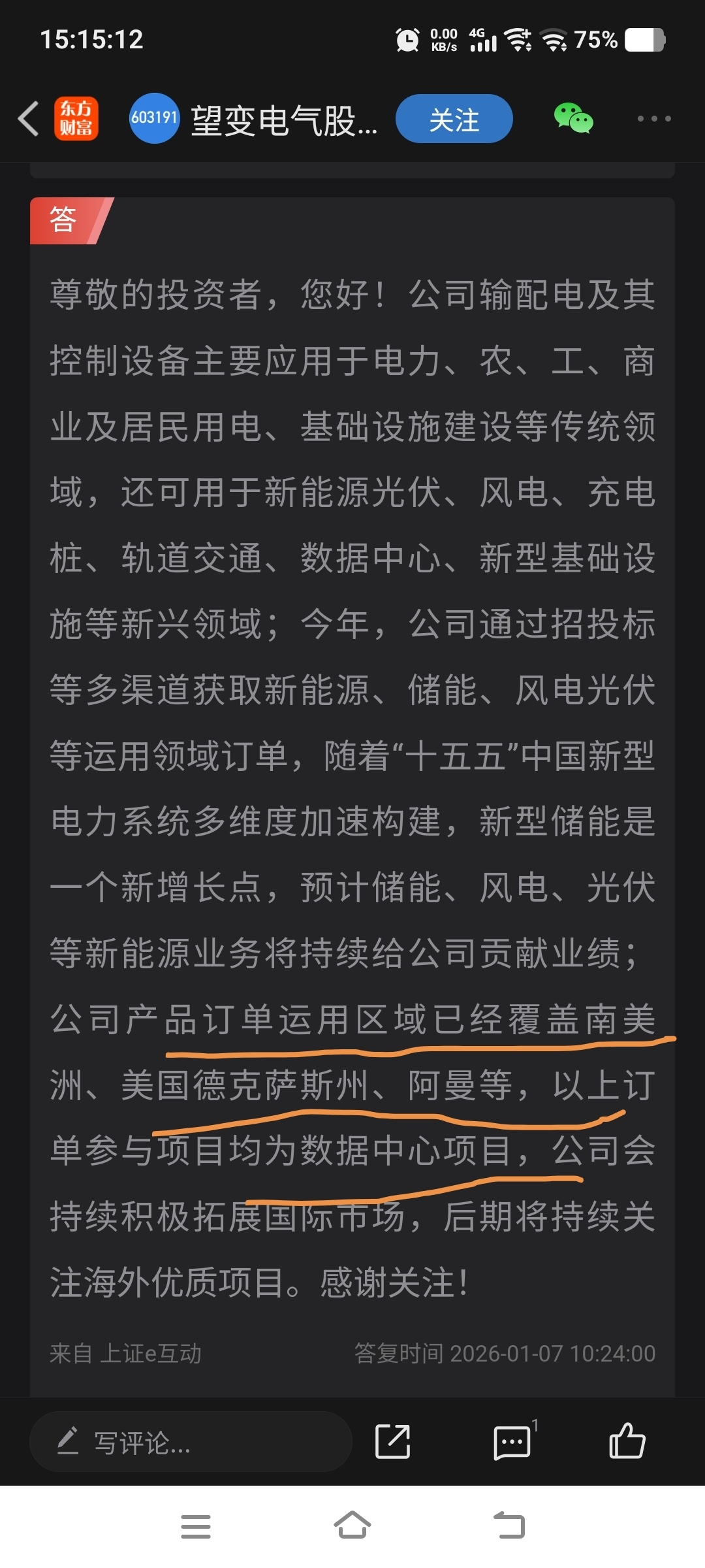$望变电气(SH603191)$ 海外业务稳步拓展根据公司2025年12月最新机构调研,望变电气的海外订单已覆盖南美洲、美国德州、阿曼等地,且全部服务于数据中心项目。公司正积极依托“一带一路”战略,跟随大型央企出海。