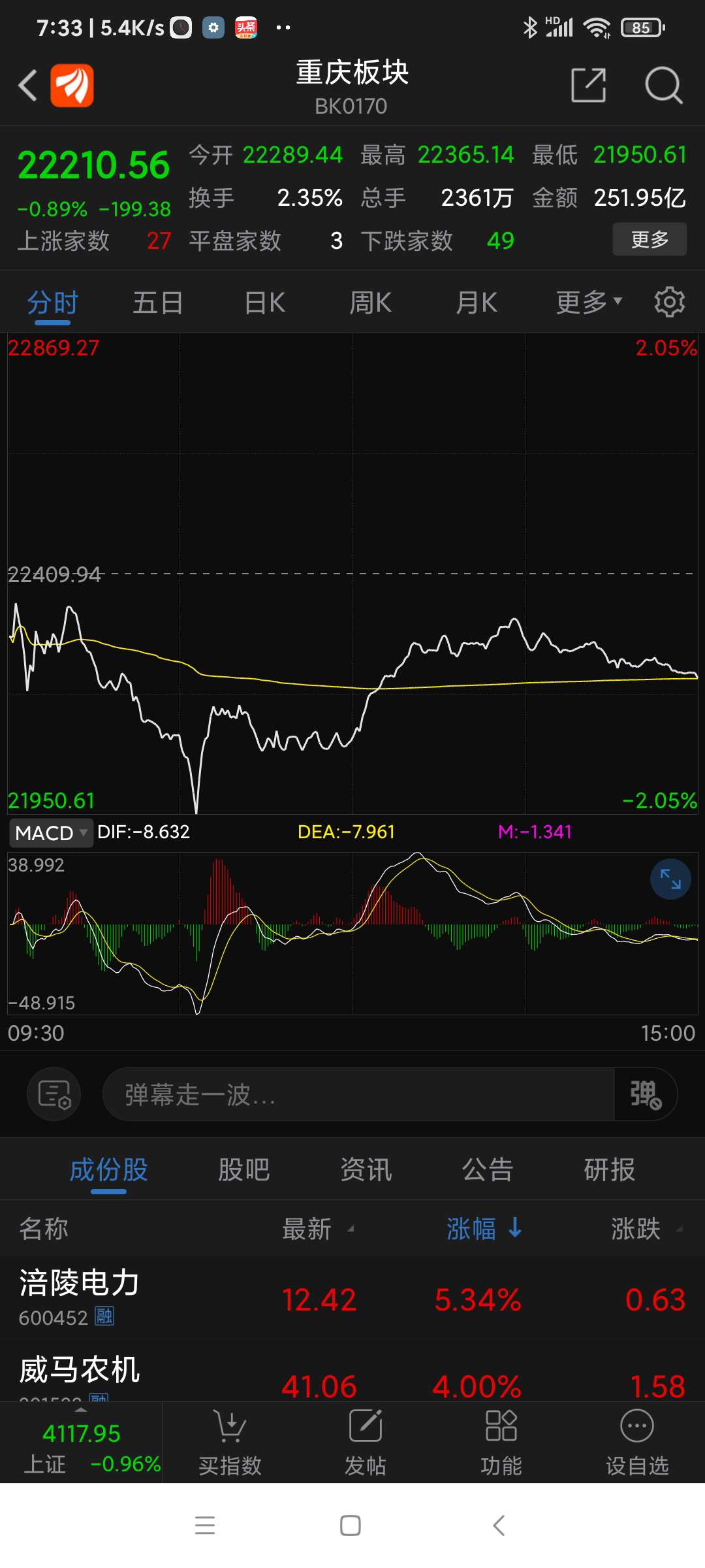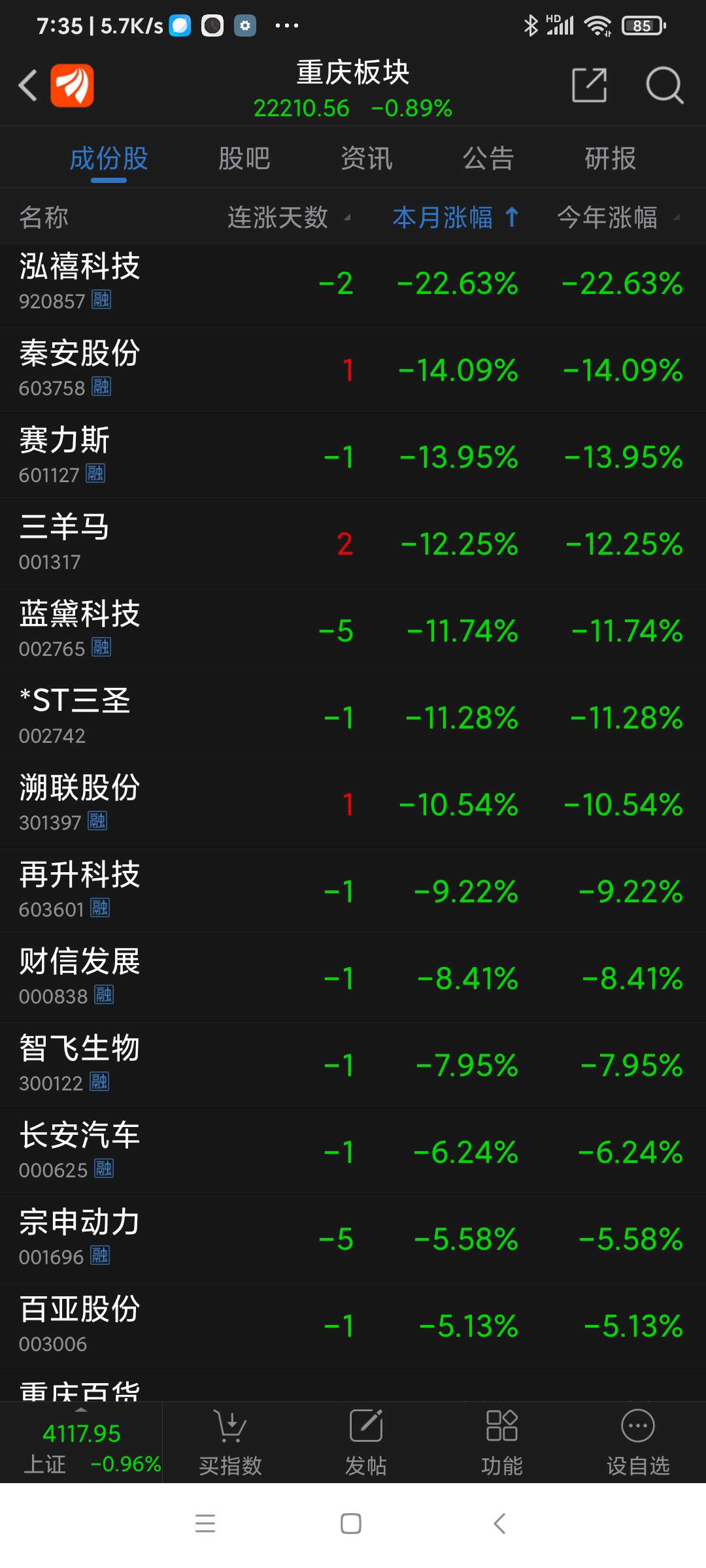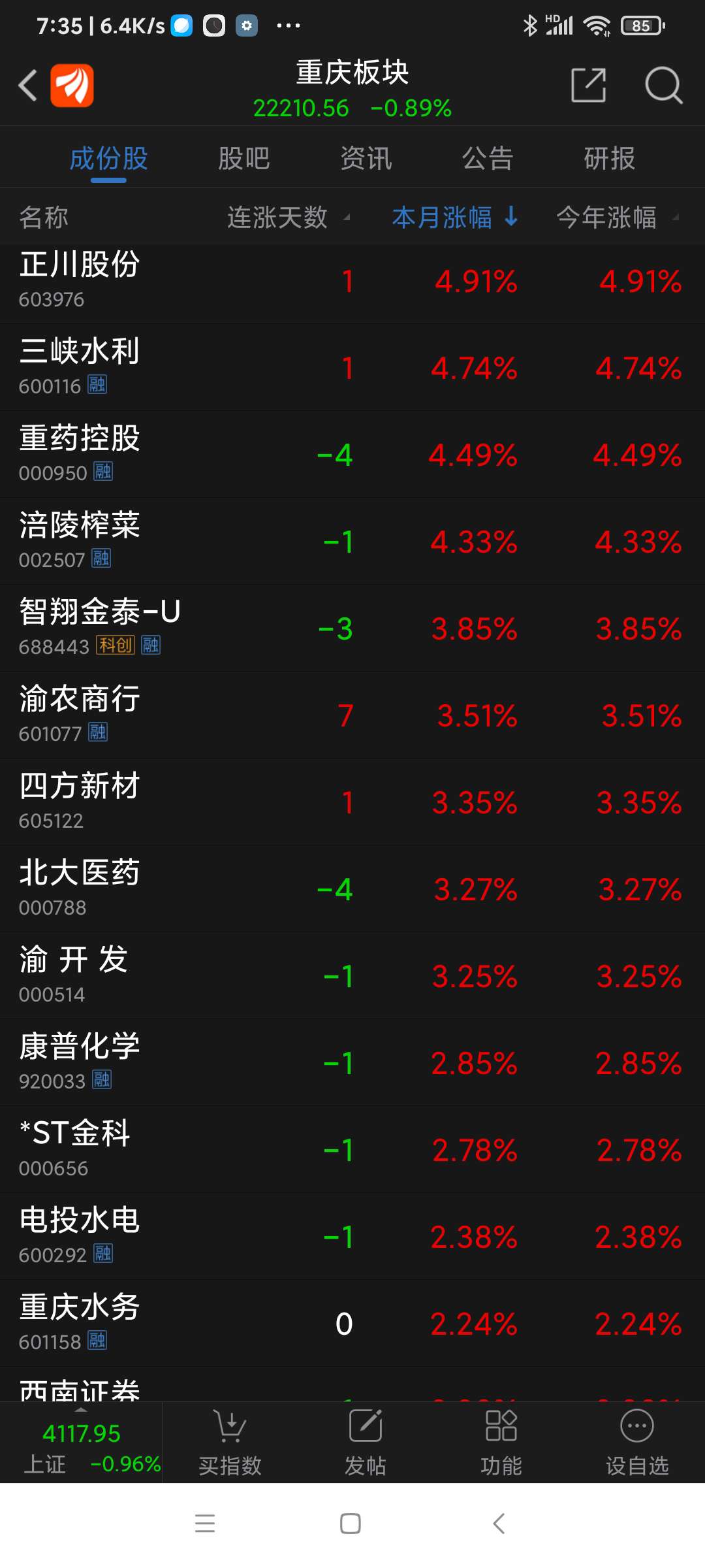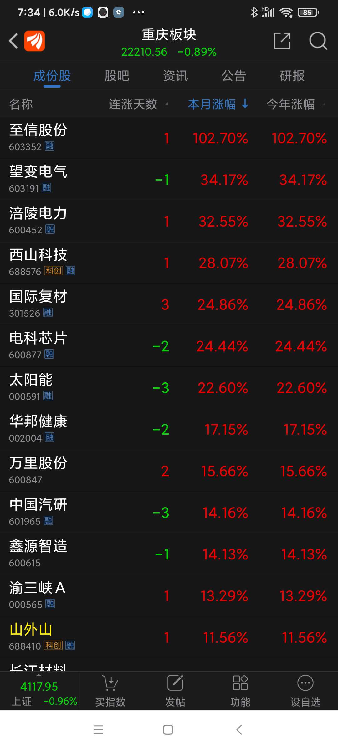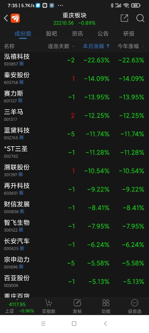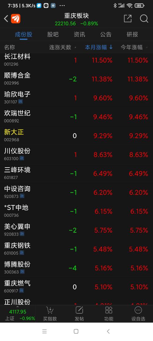 重庆板块26年元月涨幅3.30%,望变电气名列重庆板块(共有79个股票)涨幅第一名。