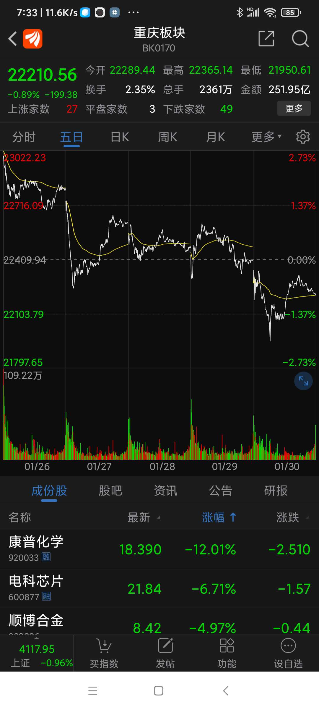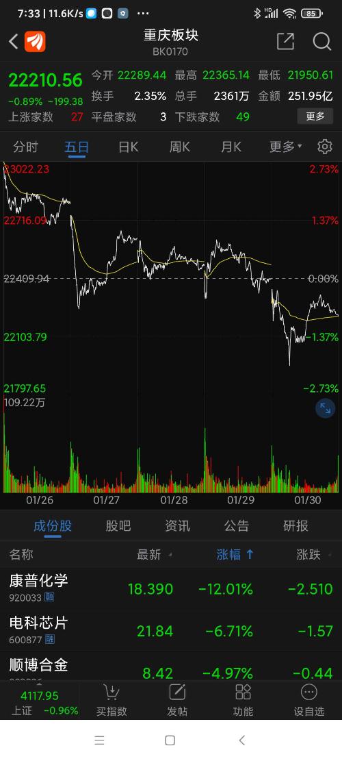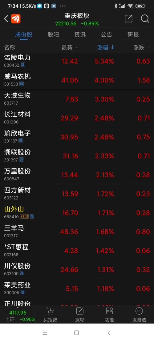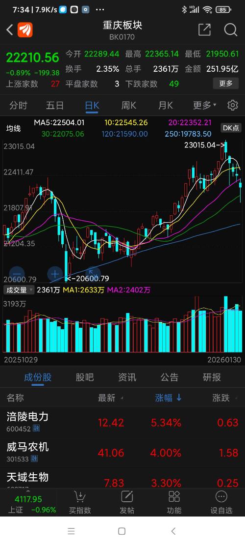 重庆板块26年元月涨幅3.30%,望变电气名列重庆板块(共有79个股票)涨幅第一
