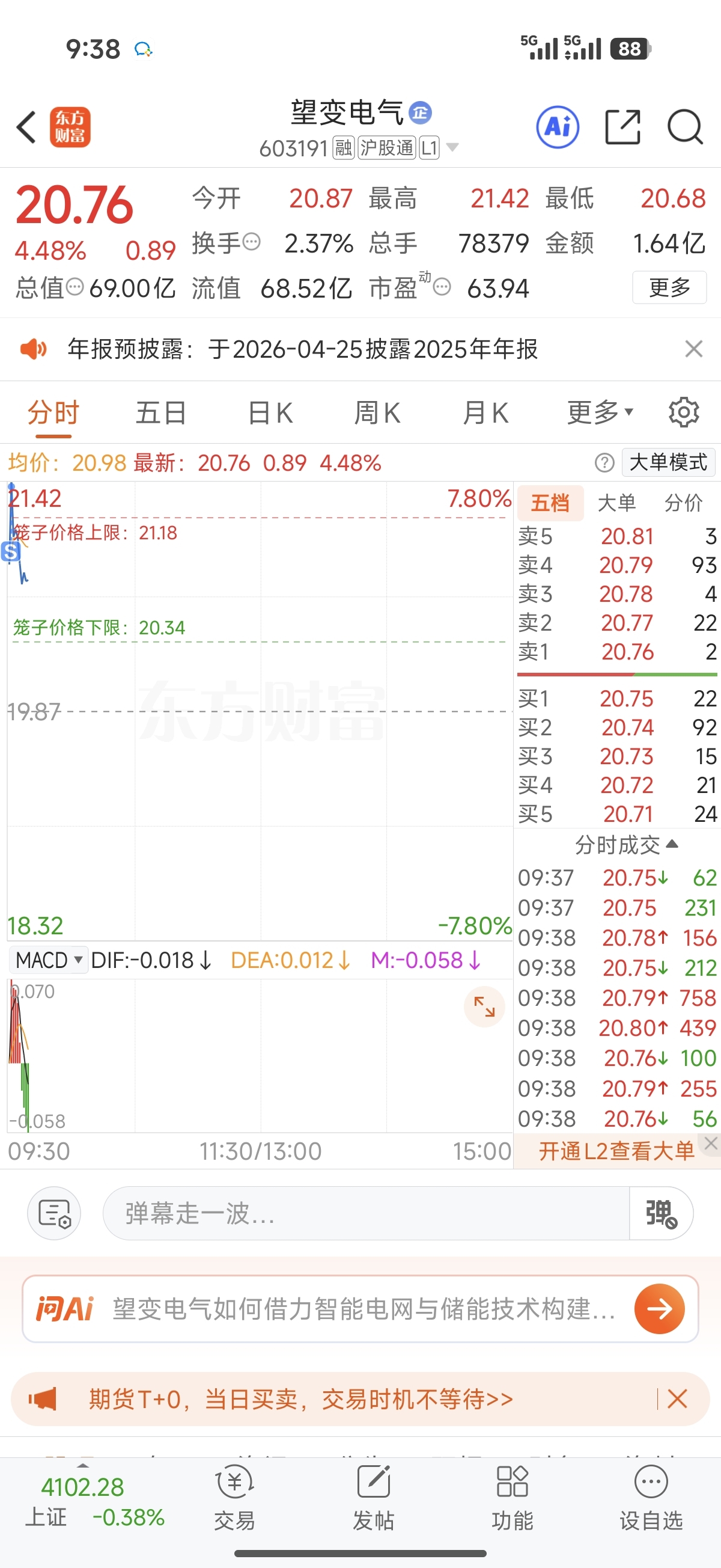$望变电气(SH603191)$ 我知道这股的尿性,所以开盘撤就对了!
