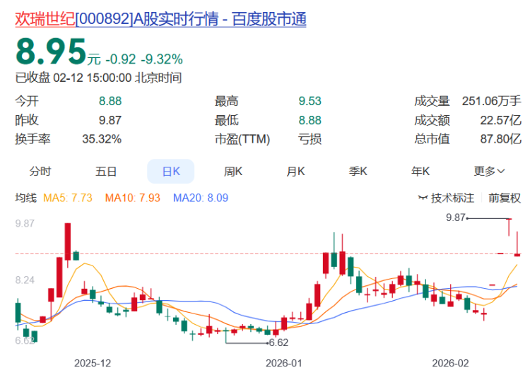 欢瑞世纪报收8.95元,日涨幅-9.32%,换手率35.32%,今年以来的涨幅为28.22%。