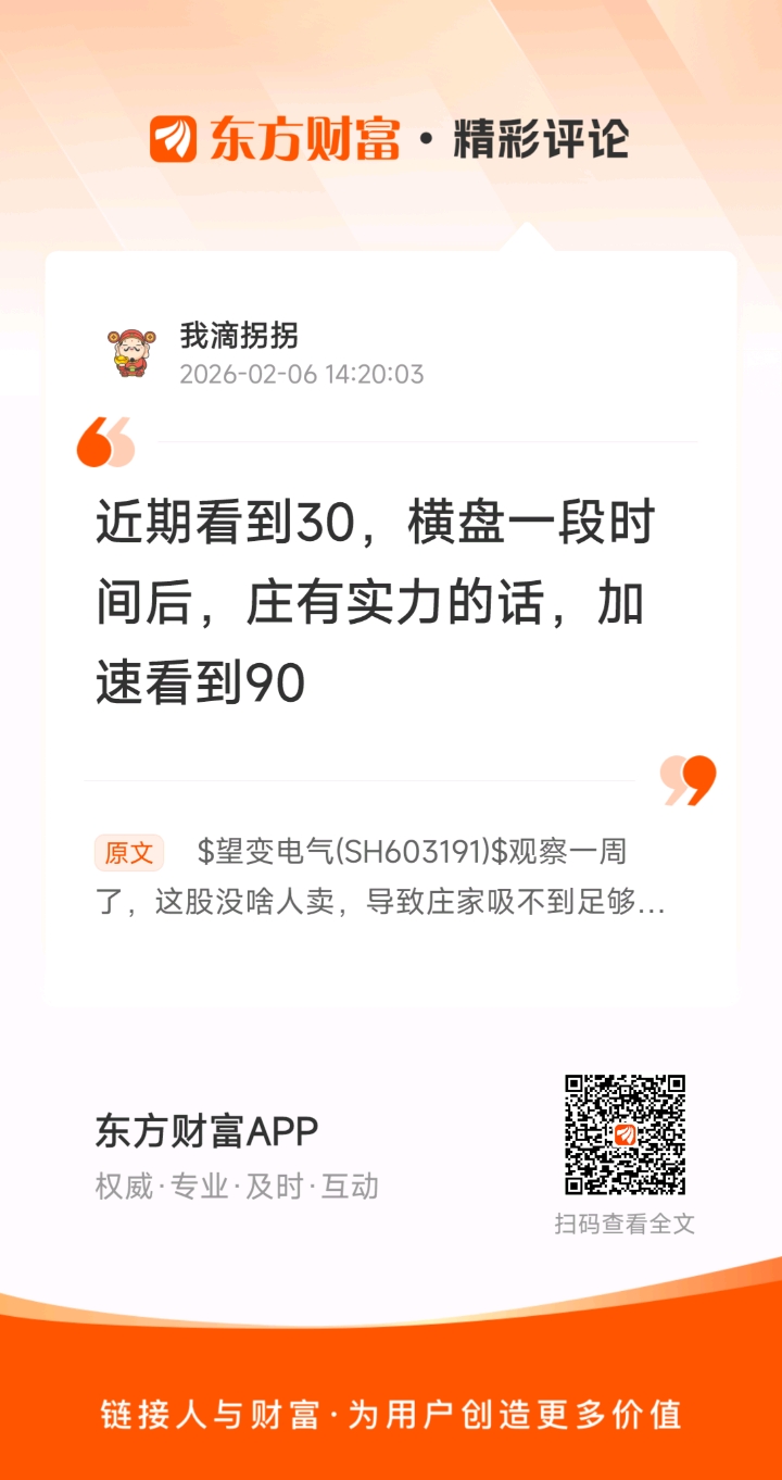 $望变电气(SH603191)$ 观察一周了,这股没啥人卖,导致庄家吸不到足够的筹码,又没实力往上扫货,所以只能慢悠悠涨,没有加速