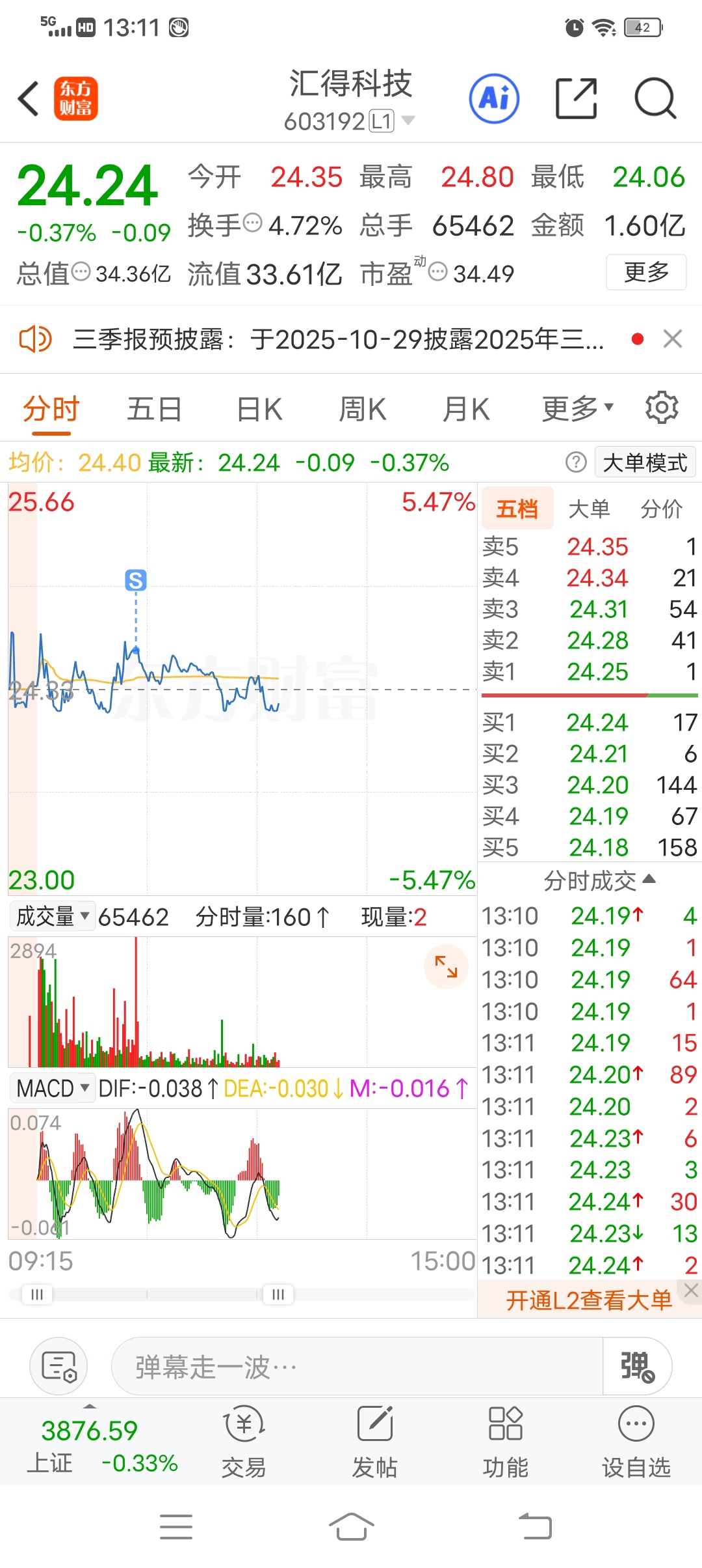 $汇得科技(SH603192)$ 扛不住了,卖了,回本了安心了,祝大家发财