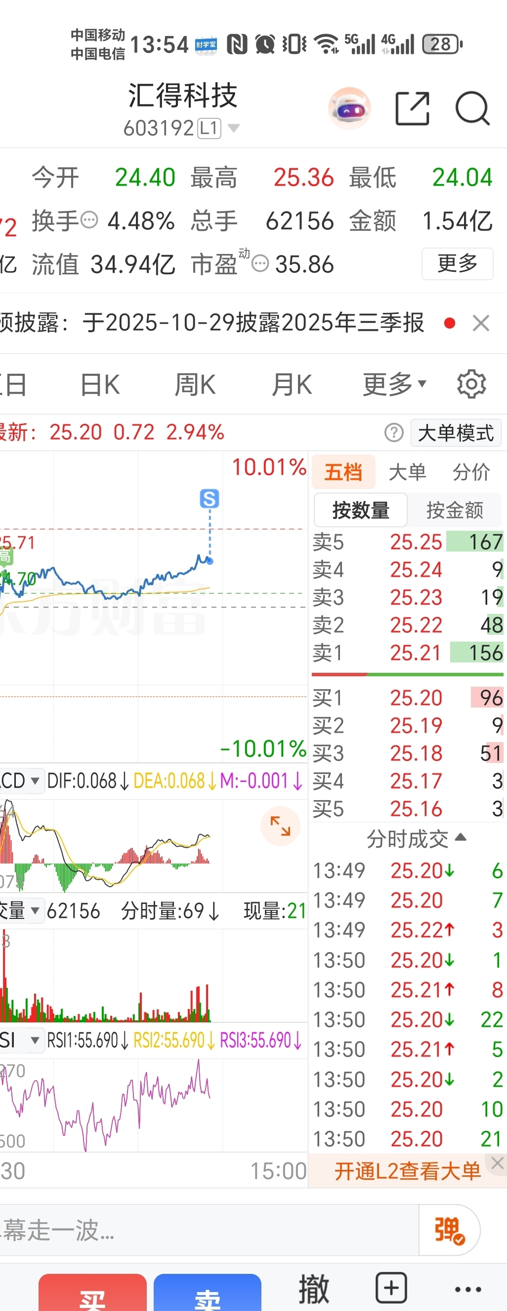 $汇得科技(SH603192)$ 走了,过几天再来看