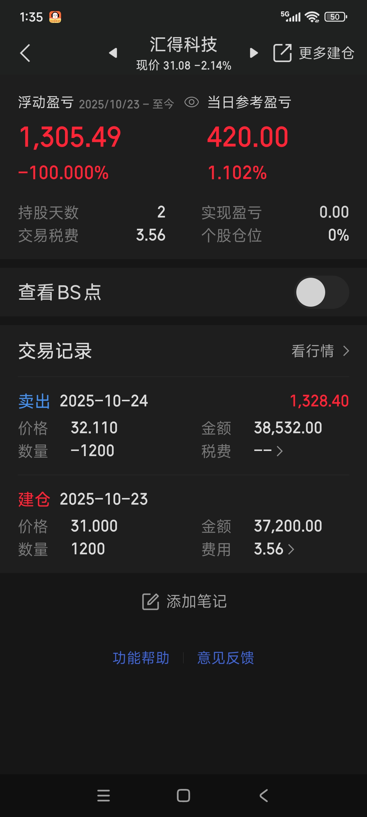$汇得科技(SH603192)$ 我走了,你涨吧,就赚你1300