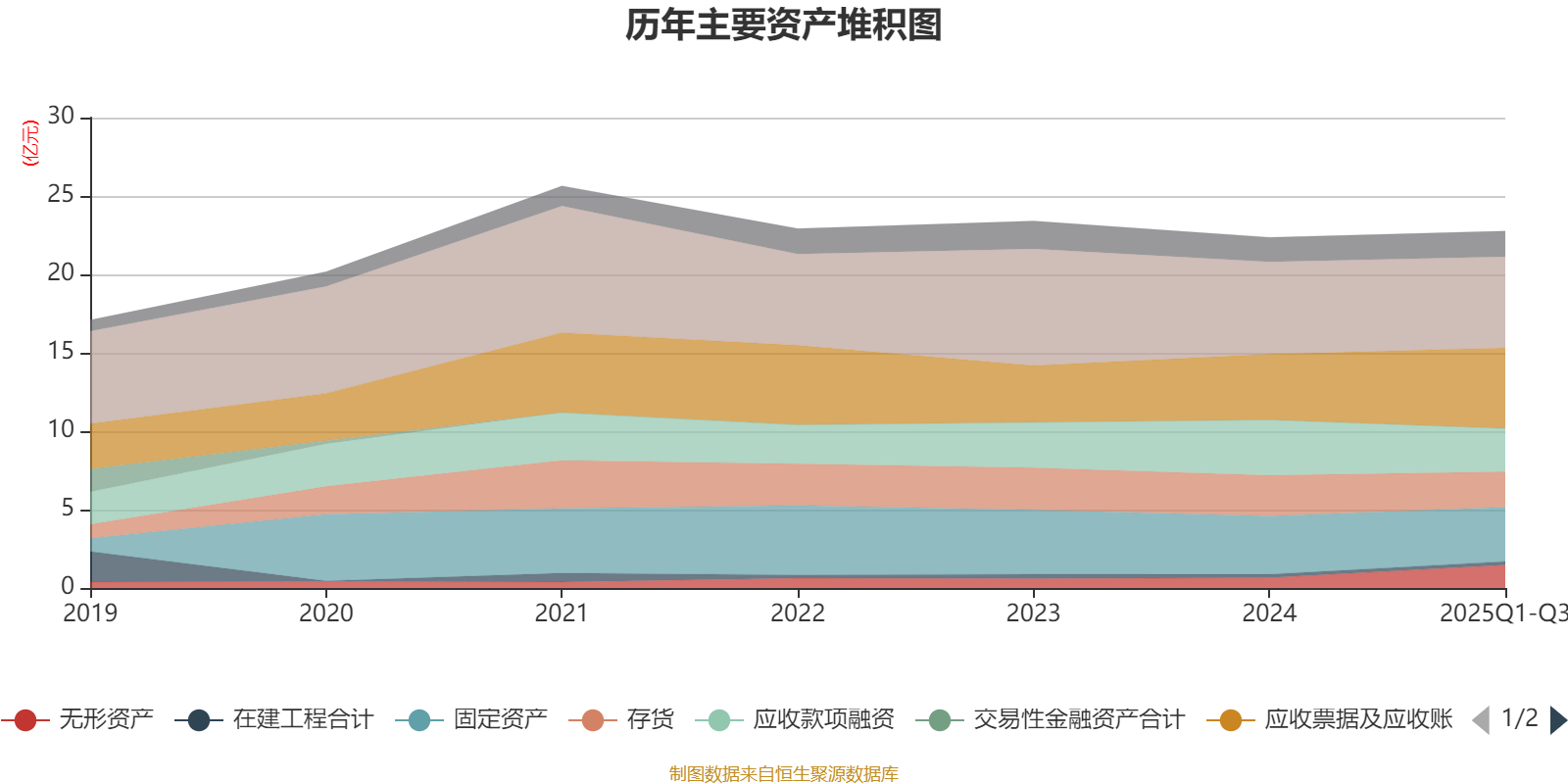 资产重大变化方面,截至2025年三季度末,公司应收票据及应收账款较上年末增加22.65%,占公司总资产比重上升3.84个百分点;应收款项融资较上年末减少22.14%,占公司总资产比重下降3.73个百分点;无形资产较上年末增加125.38%,占公司总资产比重上升3.53个百分点;存货较上年末减少12.19%,占公司总资产比重下降1.59个百分点。