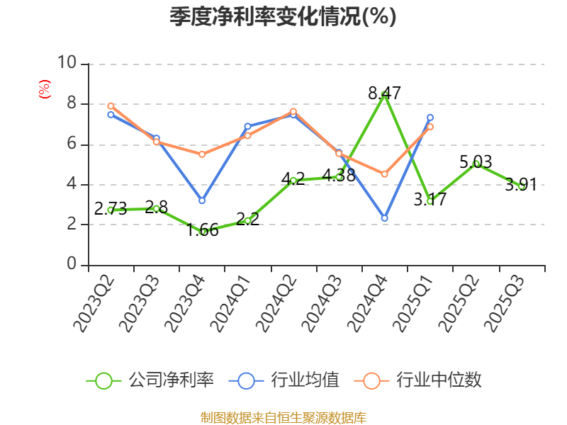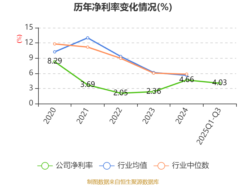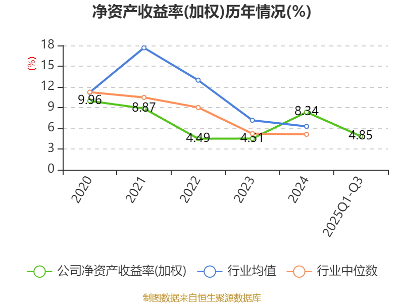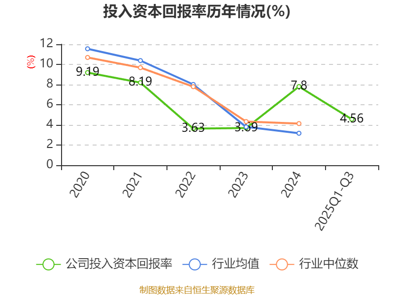 盈利能力方面, 2025年前三季度公司加权平均净资产收益率为4.85%,同比下降0.32个百分点。公司2025年前三季度投入资本回报率为4.56%,较上年同期下降0.25个百分点。