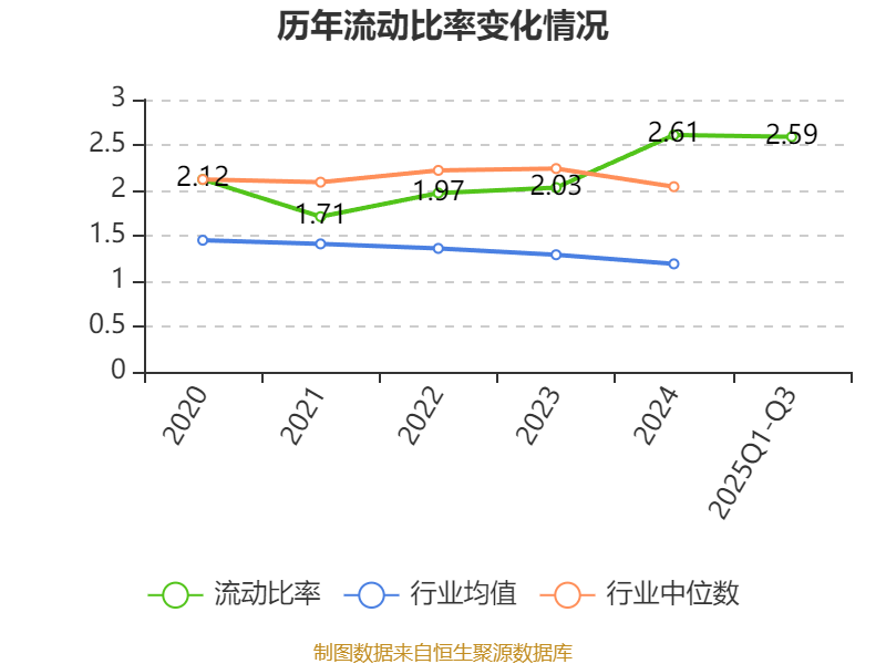 2025年前三季度,公司流动比率为2.59,速动比率为2.25。