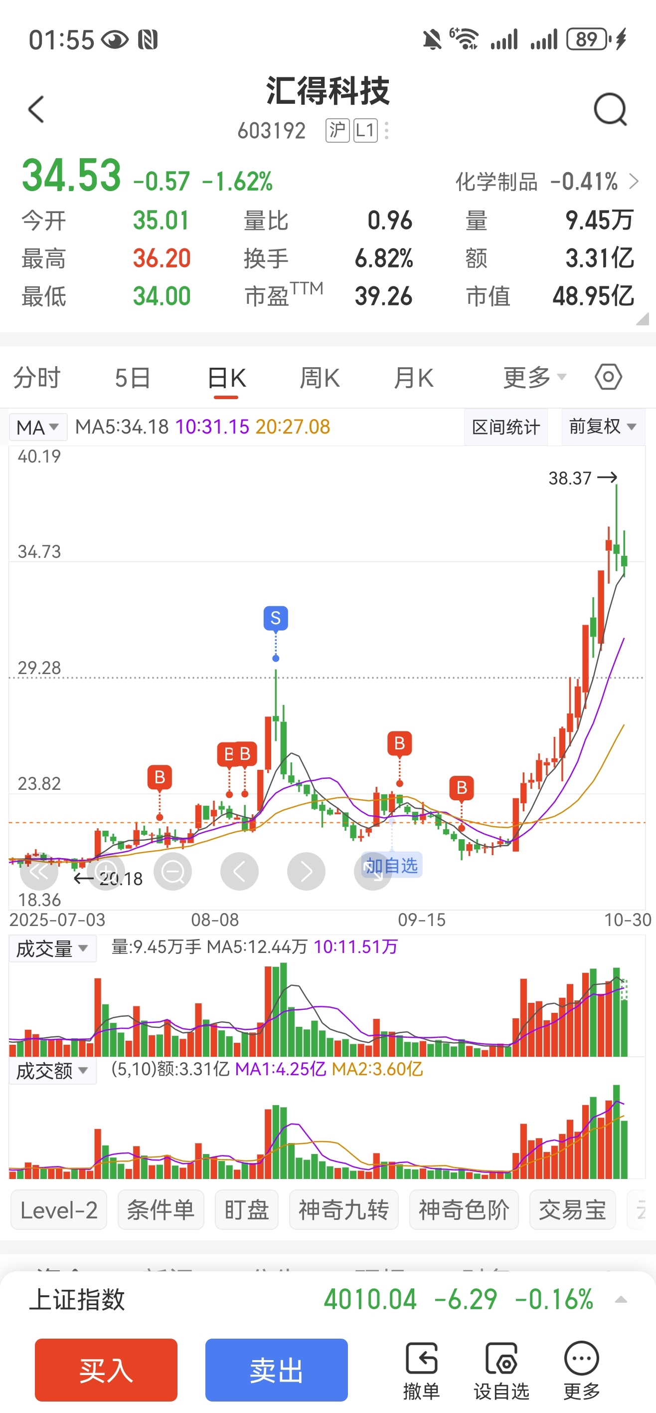 $汇得科技(SH603192)$