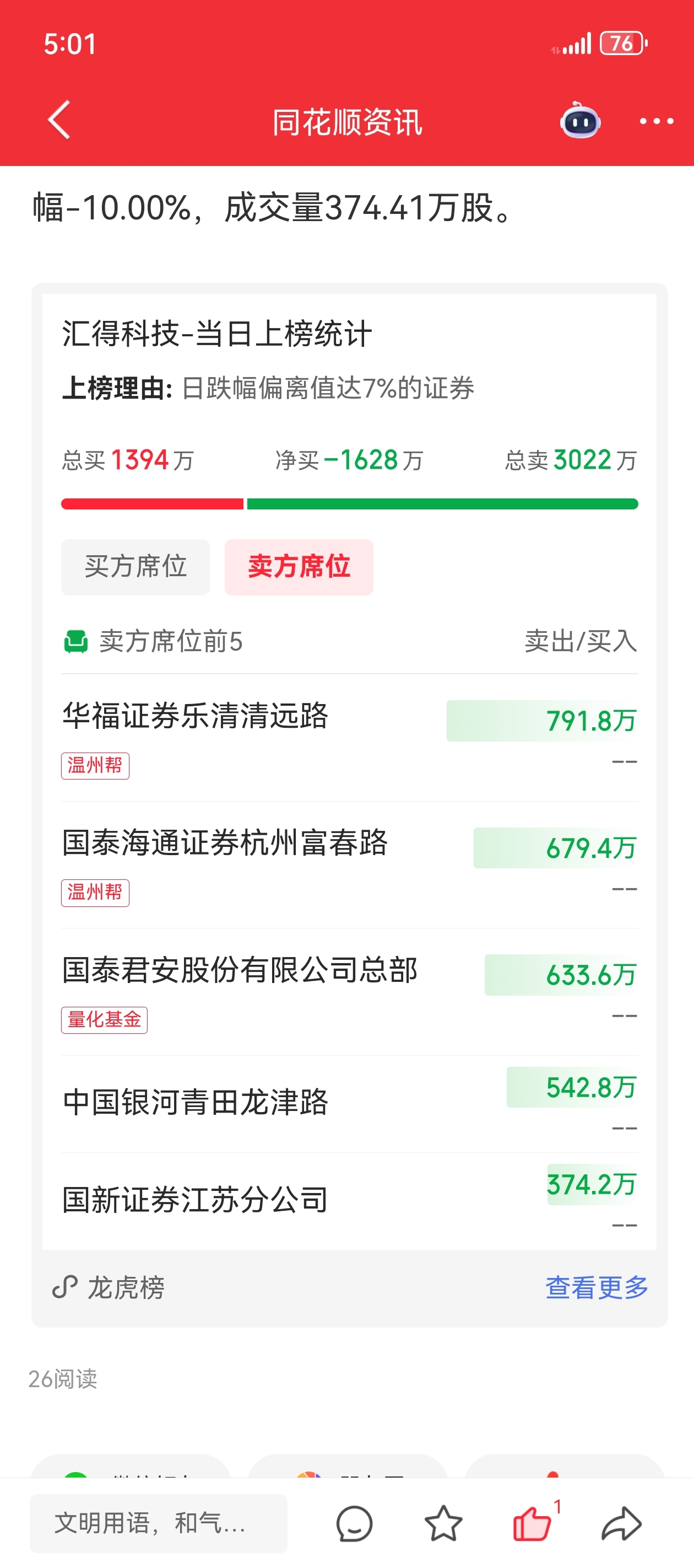 温馨提示: 1.根据《证券法》规定,禁止编造、传播虚假信息或者误导性信息,扰乱证券市场;2.用户在本社区发表的所有资料、言论等仅代表个人观点,与本网站立场无关,不对您构成任何投资建议。用户应基于自己的独立判断,自行决定证券投资并承担相应风险。《东方财富社区管理规定》